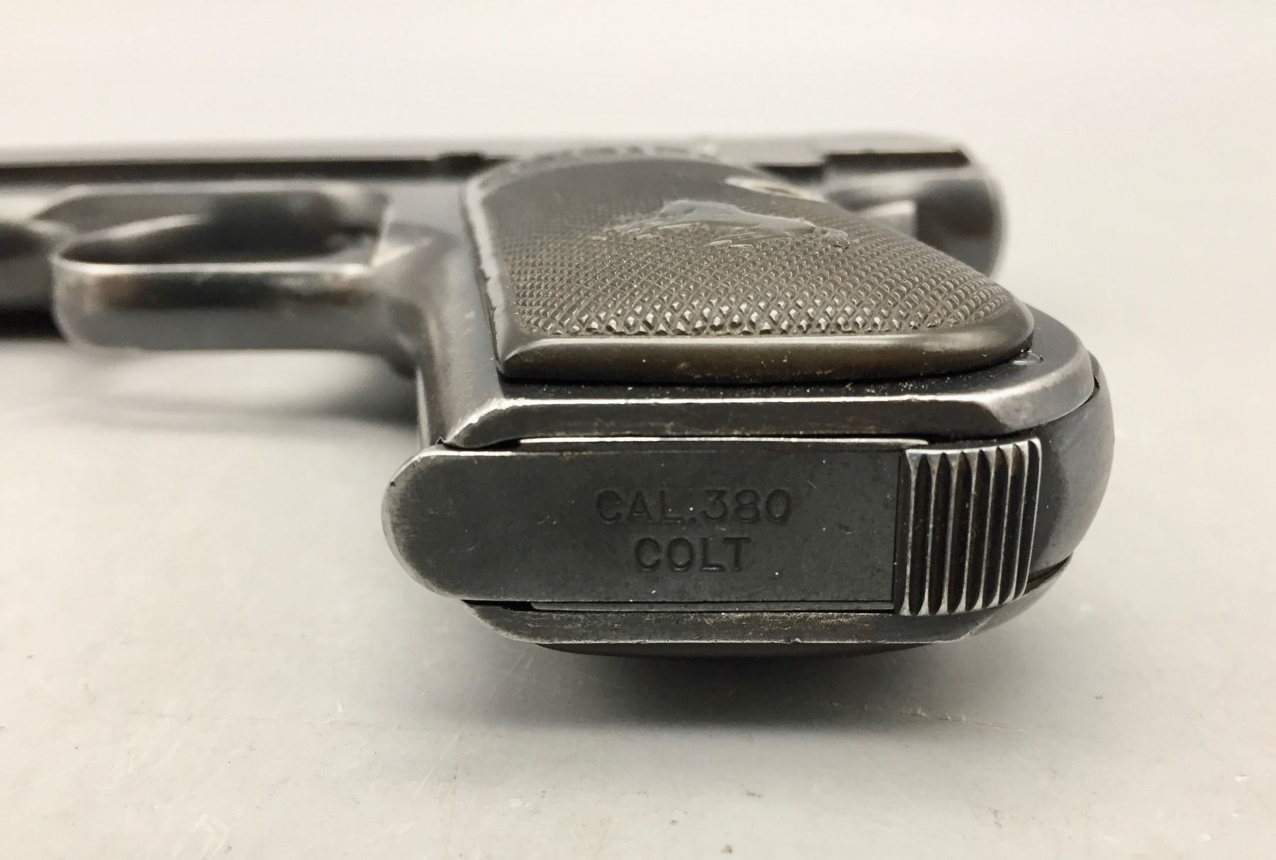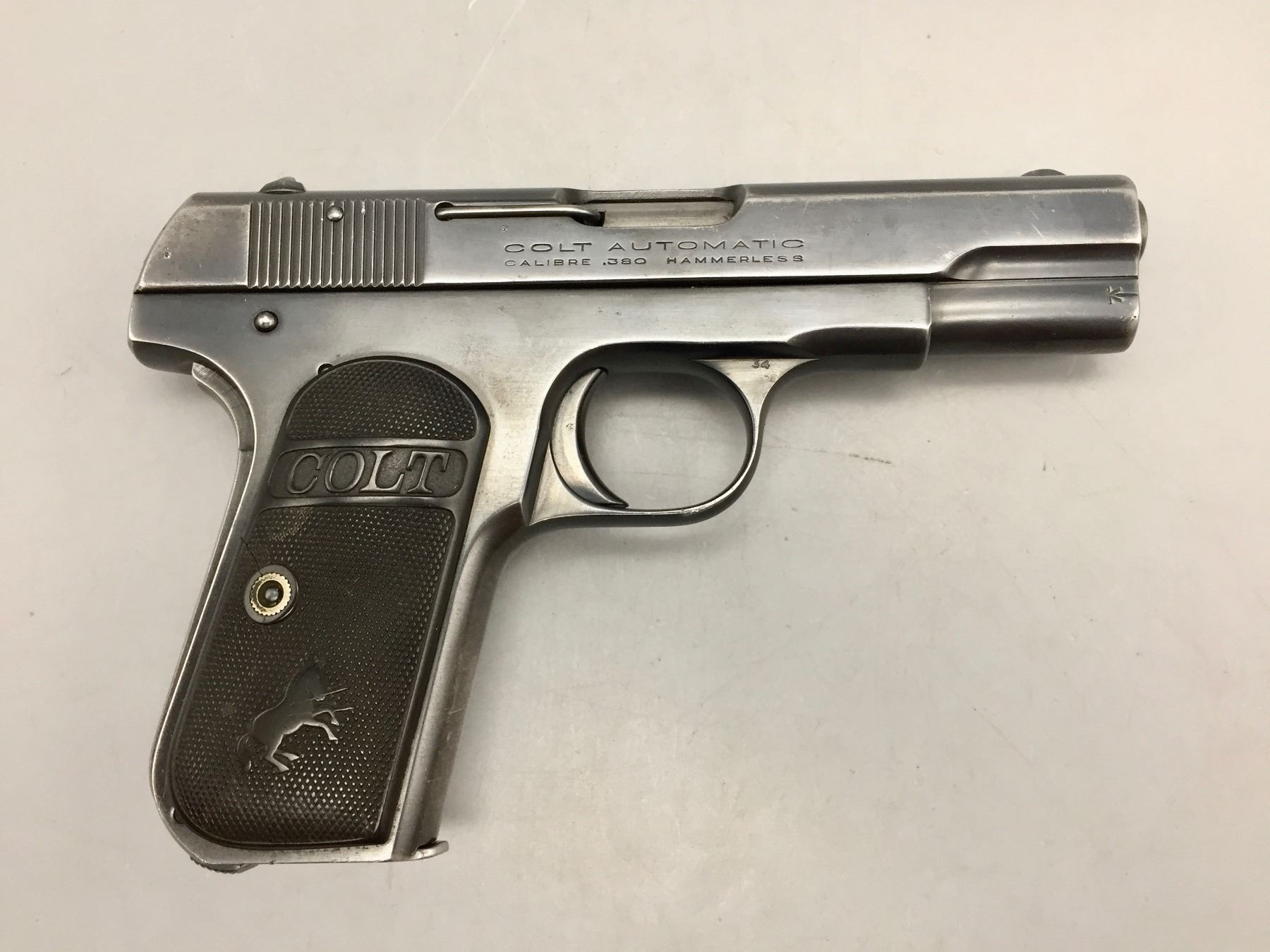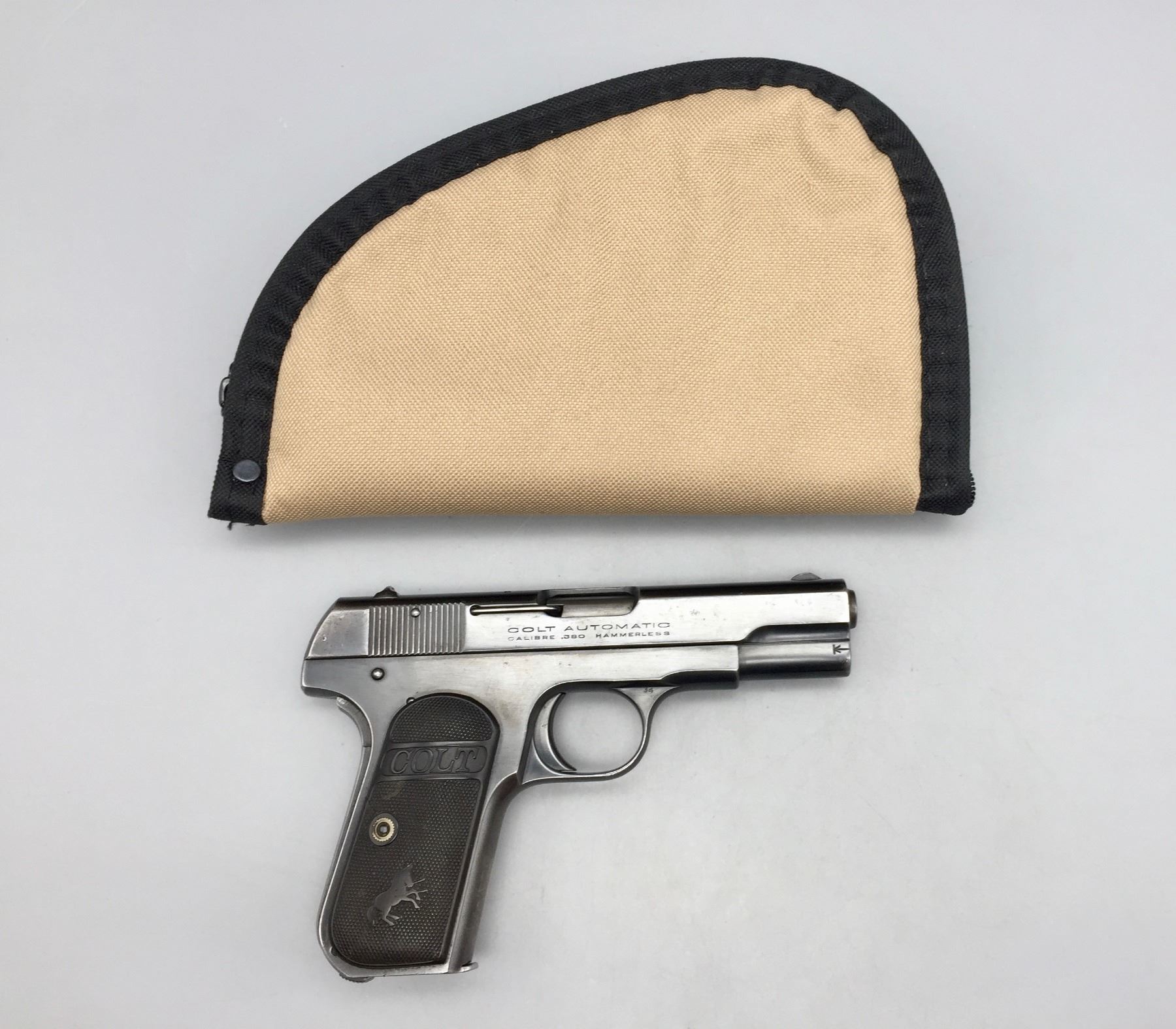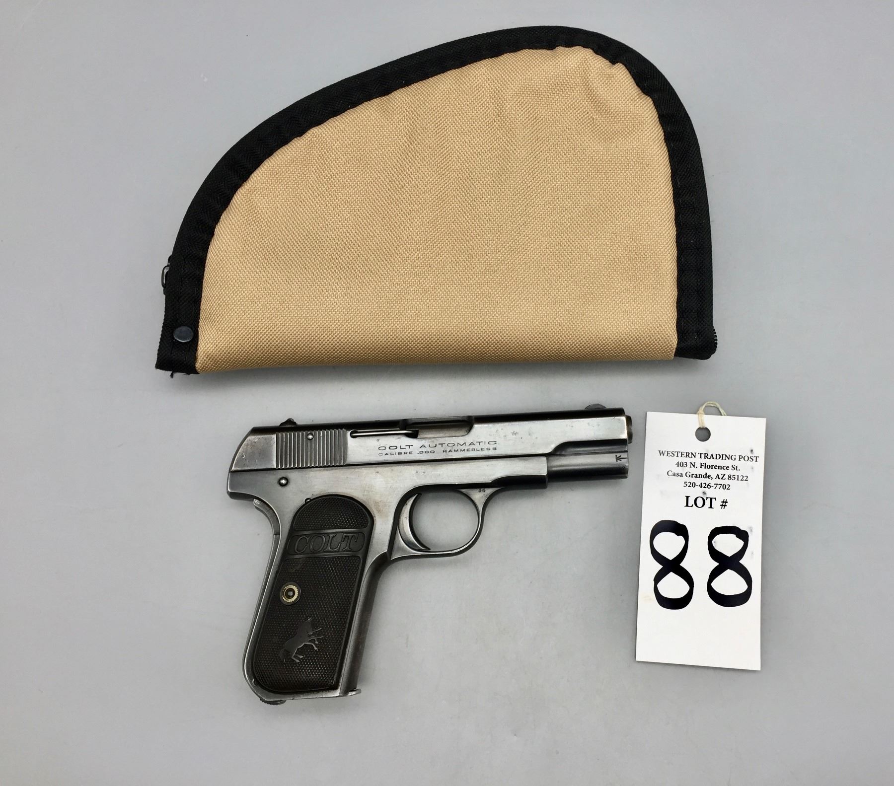 Description: Available for sale in this lot is a Model 1908 Colt .380 caliber “pocket” hammerless pistol. This pistol is blued steel with original black grips. Maker: Colt’s PT. F.A. Mfg. Co., Hartford, Conn. Approx. Age: 1924 Size: Standard size for this model. Condition: Good for its age, some wear expected, retains a major part of the original finish. Please look closely at the pictures - they are an important part of our description. Shipping: There will be a $10 handling / packaging fee for shipping this lot. The actual cost of postage will be added on top of that. *****This firearm requires an FFL Transfer*****