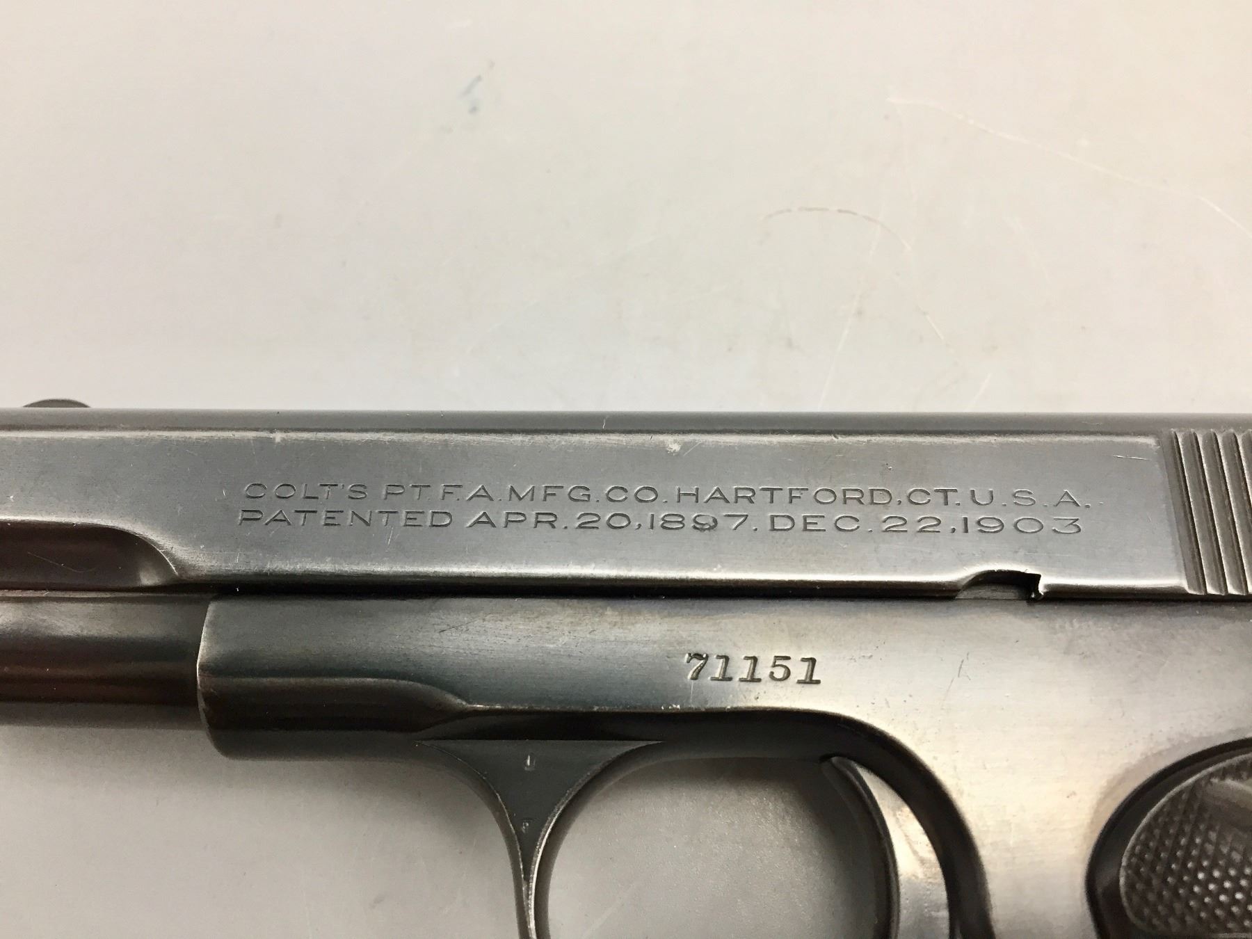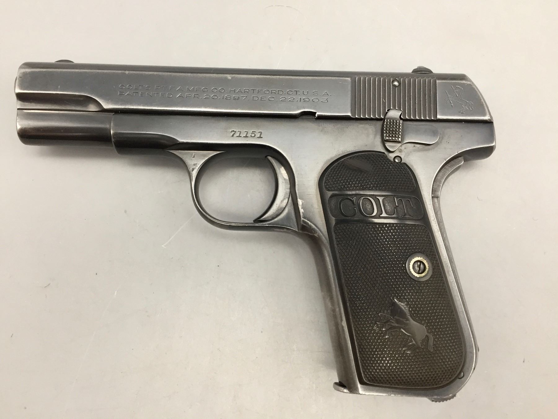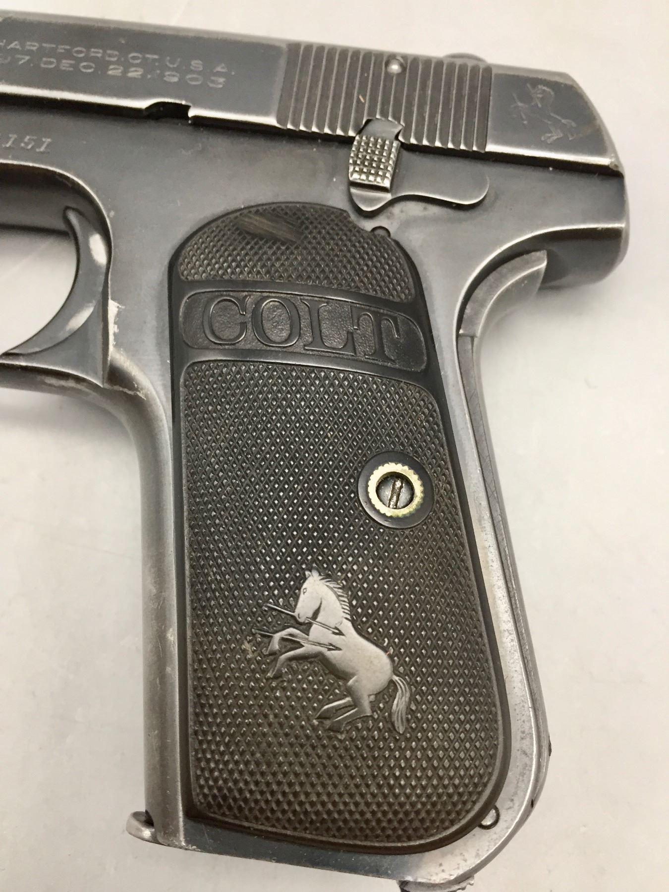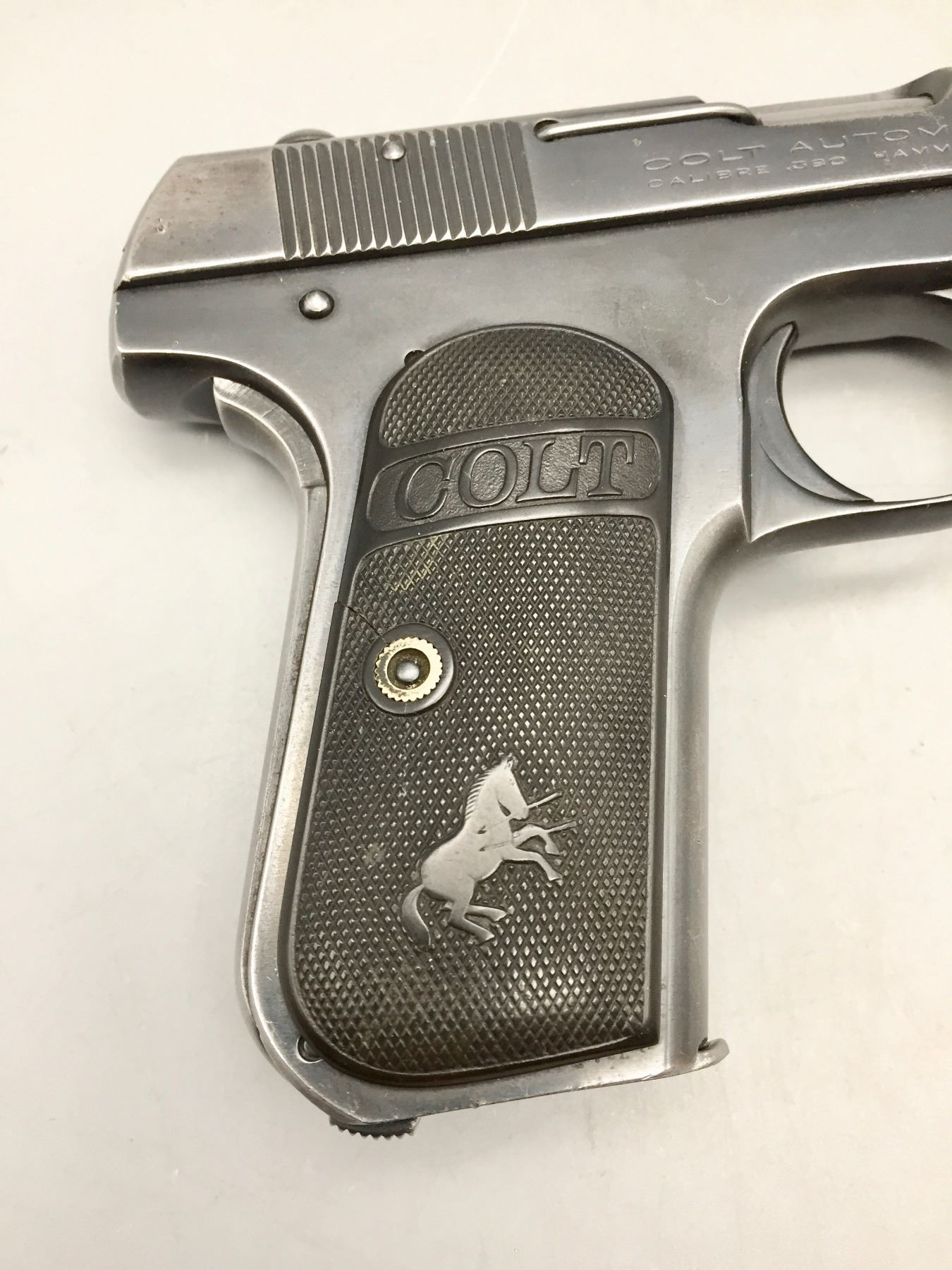 Description: Available for sale in this lot is a Model 1908 Colt .380 caliber “pocket” hammerless pistol. This pistol is blued steel with original black grips. Maker: Colt’s PT. F.A. Mfg. Co., Hartford, Conn. Approx. Age: 1924 Size: Standard size for this model. Condition: Good for its age, some wear expected, retains a major part of the original finish. Please look closely at the pictures - they are an important part of our description. Shipping: There will be a $10 handling / packaging fee for shipping this lot. The actual cost of postage will be added on top of that. *****This firearm requires an FFL Transfer*****