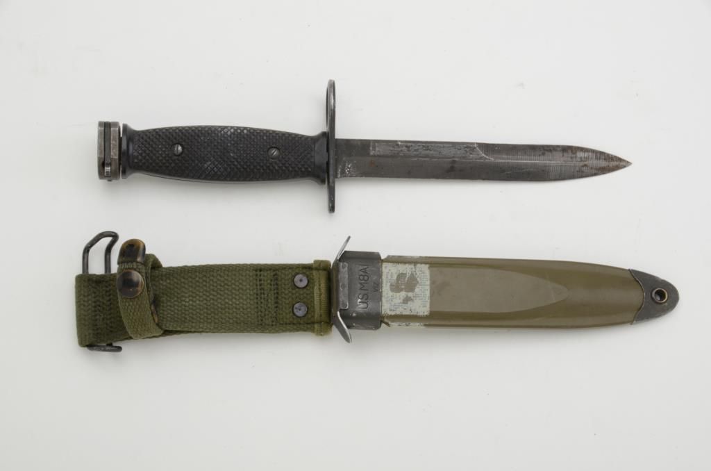 M-7 bayonet with U.S. M8A1 sheath by VIZ in overall good condition. Est.: $25-$50.