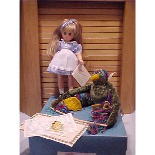 This doll is near mint in the box. Her tissue paper is wrinkled and the box has slight wear on the corners but otherwise she and jabberwocky are perfect. She is # 347 out of an edition of 500 made exclusively for the Disney World Showcase of Dolls. I understand she was not available for sale in stores except for Disney outlets. She has the Lissy face and is so pretty. Her hazel eyes need a little help to sleep as do many Alexander dolls. The jabberwocky is so cute and complete. The certificate of authenticity is included. She books for 325.00 but my price is less. Make an offer if not in an auction.