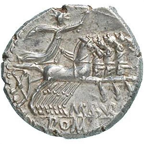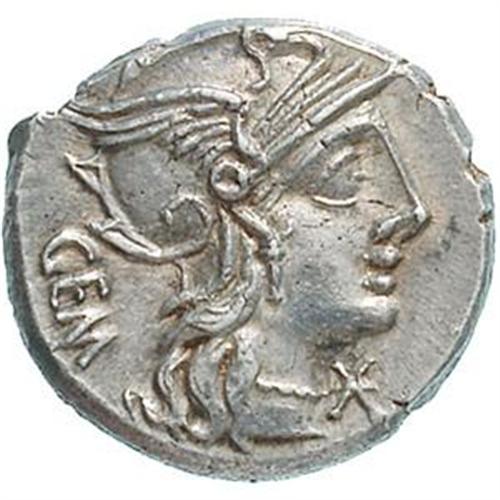 M. Aburius M.f. Geminus. Denarius, 132 a.C.