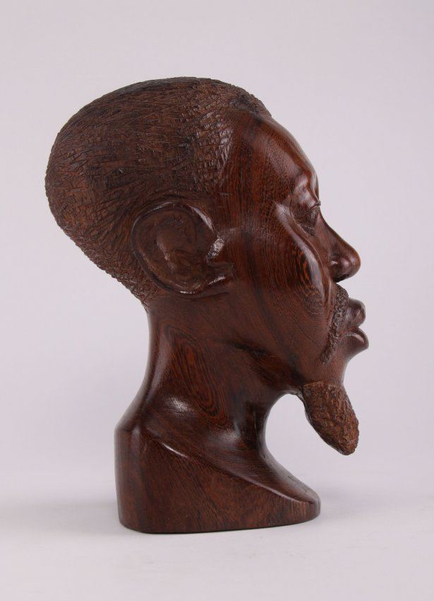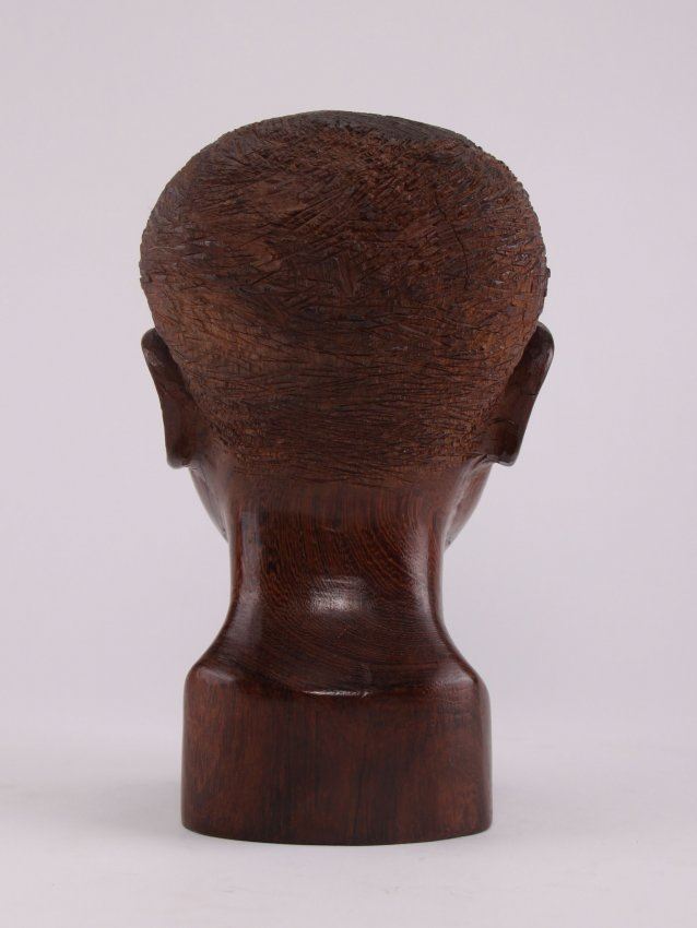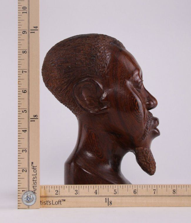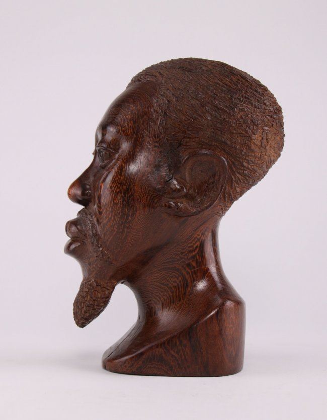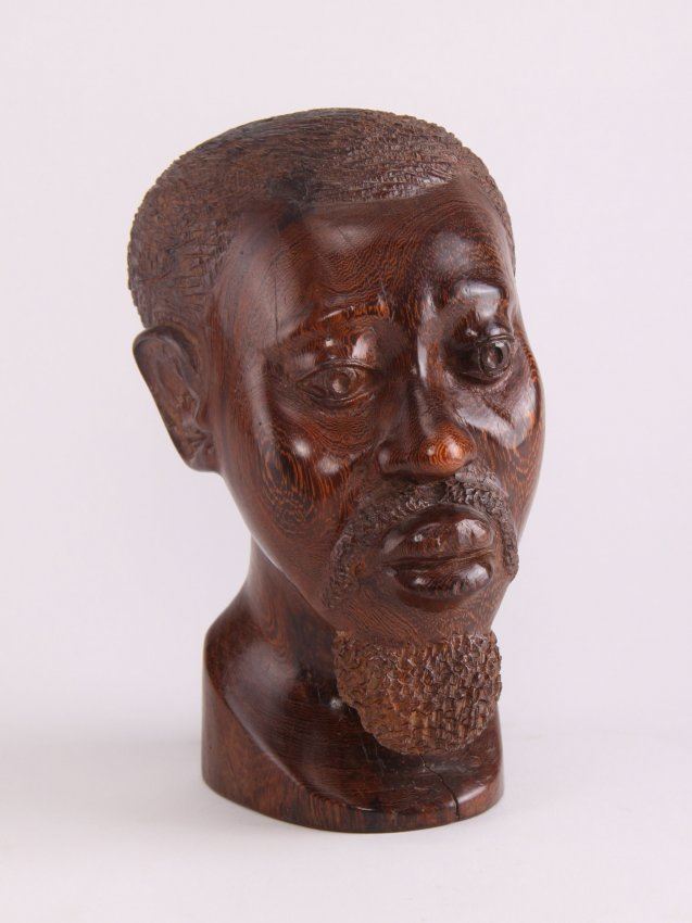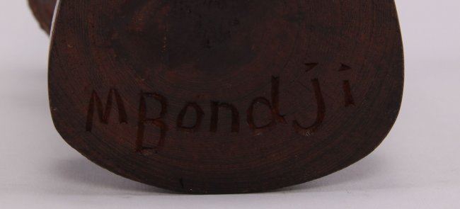 M. Bondji, African wood carving of a powerful figure. (Size: See second photo for measurement.) Photos are part of the description representing the condition report. Pangaea Auctions urges Bidder's to view all attached photos.