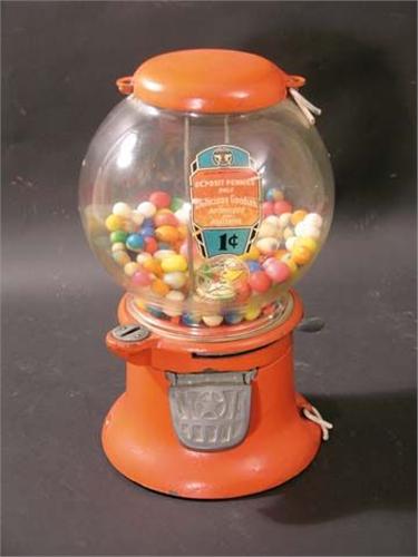 "M" Columbus gumball machine - original working condition/original decals/no lock, 16" tall.