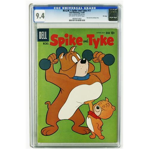 <B>M.G.M's Spike and Tyke File Copies CGC Group (Dell, 1958-61).</B></I> All issues in this group are CGC 9.4, and all have been certified with "off-white to white" page quality unless otherwise stated. Included here are #15 (CGC census 4/06: 2 in 9.4, none higher), #17 (4 in 9.4, none higher), #18 (3 in 9.4, 1 higher), #19 (2 in 9.4, 7 higher), #20 (2 in 9.4, 6 higher), #21 (4 in 9.4, 2 higher), #23 (3 in 9.4, 3 higher), and #24 (white pages; 5 in 9.4, 2 higher). Overstreet 2006 NM- 9.2 value for group = $256. <I>From the Random House Archives.</B></I>