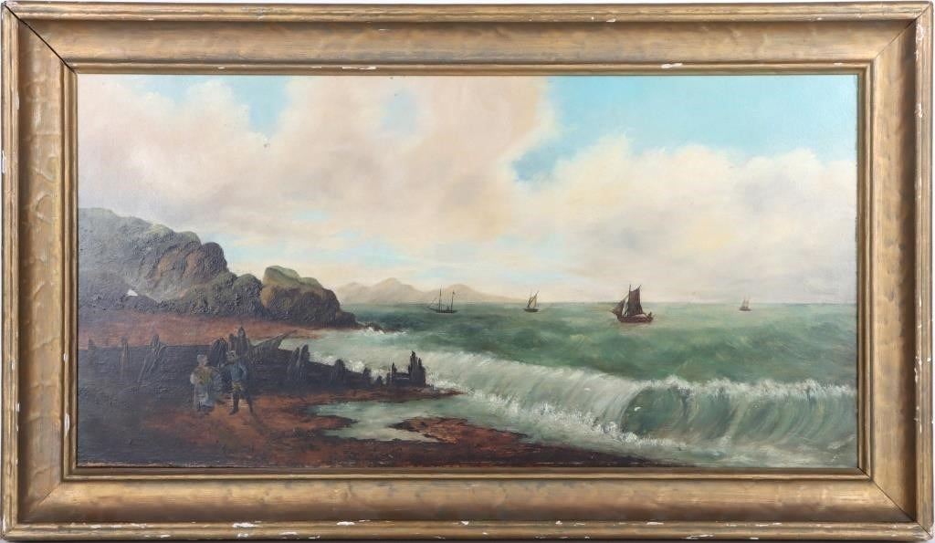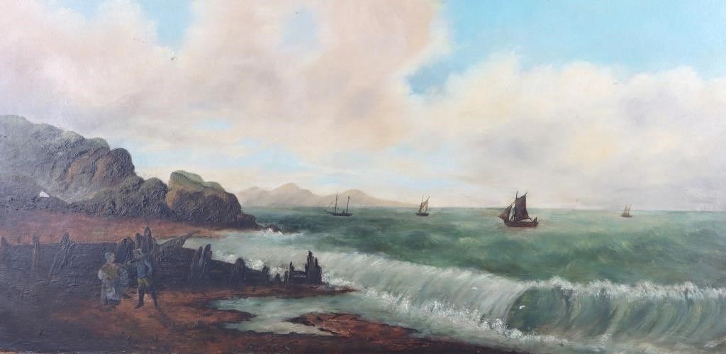 M. H. Danforth signed original seascape antique oil painting.
