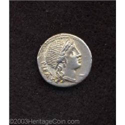 <TABLE cellSpacing=0 cellPadding=0 width="100%" bgColor=#000000 border=0><TBODY> <TR><TD width="100%"><TABLE cellSpacing=1 cellPadding=3 width="100%" border=0><TBODY><TR><TD width="100%" bgColor=#79735c><FONT face=arial color=#ffffff size=3><B>Description</B> </FONT></TD></TR><TR><TD width="100%" bgColor=#ffffff><FONT face=arial size=2><B>M. Herennius.</B></I> 108-107 B.C. AR denarius (17 mm, 3.76 g). Diademed head of Pietas right / Amphinomus carrying his father right. Crawford 308/1a; Sydenham 567; Herennia 1. Nice VF, light porosity in Pietas' hair. </FONT></TD></TR></TBODY></TABLE></TD></TR></TBODY></TABLE><BR><A name=PricesRealized></A><TABLE cellSpacing=0 cellPadding=0 width="100%" bgColor=#000000 border=0><TBODY><TR><TD width="100%"><TABLE cellSpacing=1 cellPadding=3 width="100%" border=0><TBODY><TR><TD width="100%" bgColor=#79735c><A name=PR><FONT face=arial color=#ffffff size=3><B>Previous Prices from Heritage Auctions</B> </FONT></A></TD></TR><TR><TD bgColor=#f6f6ed>No Prior Data Recorded </TD></TR><TR><TD bgColor=#ffffff><FONT face=arial size=1 ?>PLEASE NOTE: All prices realized reflect the final hammer price PLUS the buyer's premium in auctions that charge a buyer's premium. Each item has a notation at the top of the listing indicating whether that lot included a buyer's premium. Example: A item that sells with a final hammer price of $100 and a 20% buyer's premium will display with a price realized of $120. All information listed is intended to be as accurate as possible, but errors are possible. Please use this guide carefully and inform us of any inaccuracies. </FONT></TD></TR></TBODY></TABLE></TD></TR></TBODY></TABLE><BR><TABLE cellSpacing=0 cellPadding=0 width="100%" bgColor=#000000 border=0><TBODY><TR><TD width="100%"><TABLE cellSpacing=1 cellPadding=3 width="100%" border=0><TBODY><TR><TD width="100%" bgColor=#79735c colSpan=6><FONT face=arial color=#ffffff size=3><B>Price Guide*</B> </FONT></TD></TR><TR bgColor=#f6f6ed><TD align=middle><B>Grade</B> </TD><TD align=middle><B>Coin World<BR>(Trends)</B> </TD><TD align=middle><B>Numismedia<BR>Retail</B> </TD><TD align=middle><B>Numismedia<BR>Wholesale</B> </TD><TD align=middle><B>Coin<BR>Universe</B> </TD><TD align=middle><B>Heritage<BR>Value Index</B> </TD></TR><TR bgColor=#ffffff><TD colSpan=6><FONT size=1>*All information listed is intended to be as accurate as possible, but errors are possible. No item may be returned or refused based on this information which is provided as a service to our customers. You should contact each pricing source directly to determine the accuracy of this information. </FONT></TD></TR></TBODY></TABLE></TD></TR></TBODY></TABLE><BR><TABLE cellSpacing=0 cellPadding=0 width="100%" bgColor=#000000 border=0><TBODY><TR><TD width="100%"><TABLE cellSpacing=1 cellPadding=3 width="100%" border=0><TBODY><TR><TD width="100%" bgColor=#79735c><FONT face=arial color=#ffffff size=3><B>Population Guide</B> </FONT></TD></TR><TR bgColor=#ffffff> Important notice: Heritage usually auctions material at the rate of 200-250 lots per hour. On some occasions eBay Live bid software or the Internet may not be able to keep up with the pace of the auction. We recommend placing a realistic absentee bid now as insurance to avoid disappointment. Occasionally the auctioneer may eliminate or reject an eBay Live bid, and the auctioneer may also reopen a lot after the close of the eBay live bidding (usually because we missed an audience bid), and may reject your bid even if it shows you as the winning bidder. By bidding via eBay Live, you agree that Heritage may award the lot to another bidder at its sole discretion under the circumstances described above or any other reasonable circumstances. Also please note that all Heritage lots purchased through eBay Live carry a 20% Buyer's Premium. Please make sure you read the Terms and Conditions before you bid.</TD></TR></TBODY></TABLE></TD></TR></TBODY></TABLE>