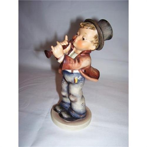 Make someone's Holiday with this stunning M. I. Hummel. It is called "SERENADE." This charming little boy is wearing a black top hat, a white shirt with suspenders, a brown jacket, and blue patched pants. He is in perfect condition. His colors are brillant. No chips, cracks, or crazing. I do not have a box with him. The bottom is stamped with 85/11, a v with full bee in it and W Germany underneath. It also has a 33 stamped on it. It is TM2 made Circa 1960's. What a wonderful addition to an Hummel Collection. Christmas is just around the corner. Don;t let this one pass you by!