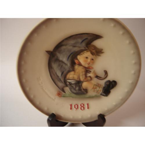 M.J.HUMMEL 11TH ANNUAL PLATE. # 274. HAND PAINTED.GOEBEL W. GERMANY 1973. LITTLE BOY UNDER UMBRELLA.