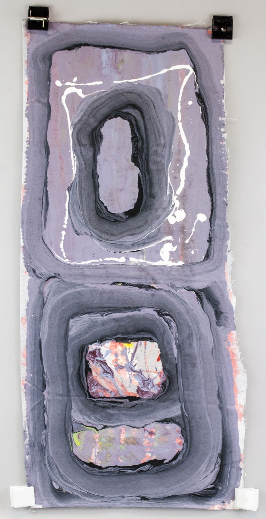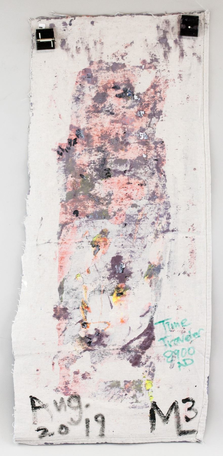 Oil on canvas. Featuring abstract composition. "Time Traveler 8900AD Aug 2019 M3" inscribed on verso. 63 x 60 cm (24.5 x 24 in)