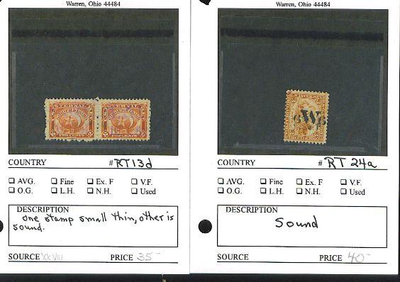 Small but useful lot of (16) Private Perfumery and Playing Card stamps with values to $110. Several nice examples with slight duplication. 2009 SCV.$497+
