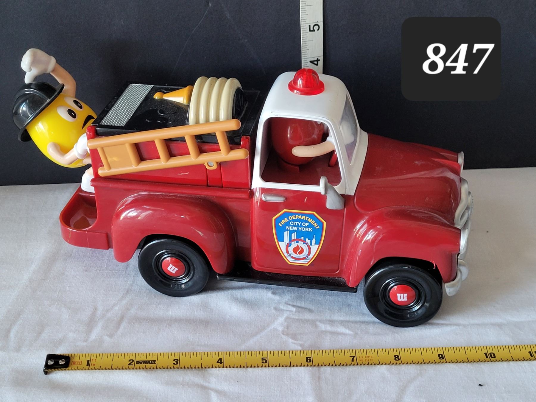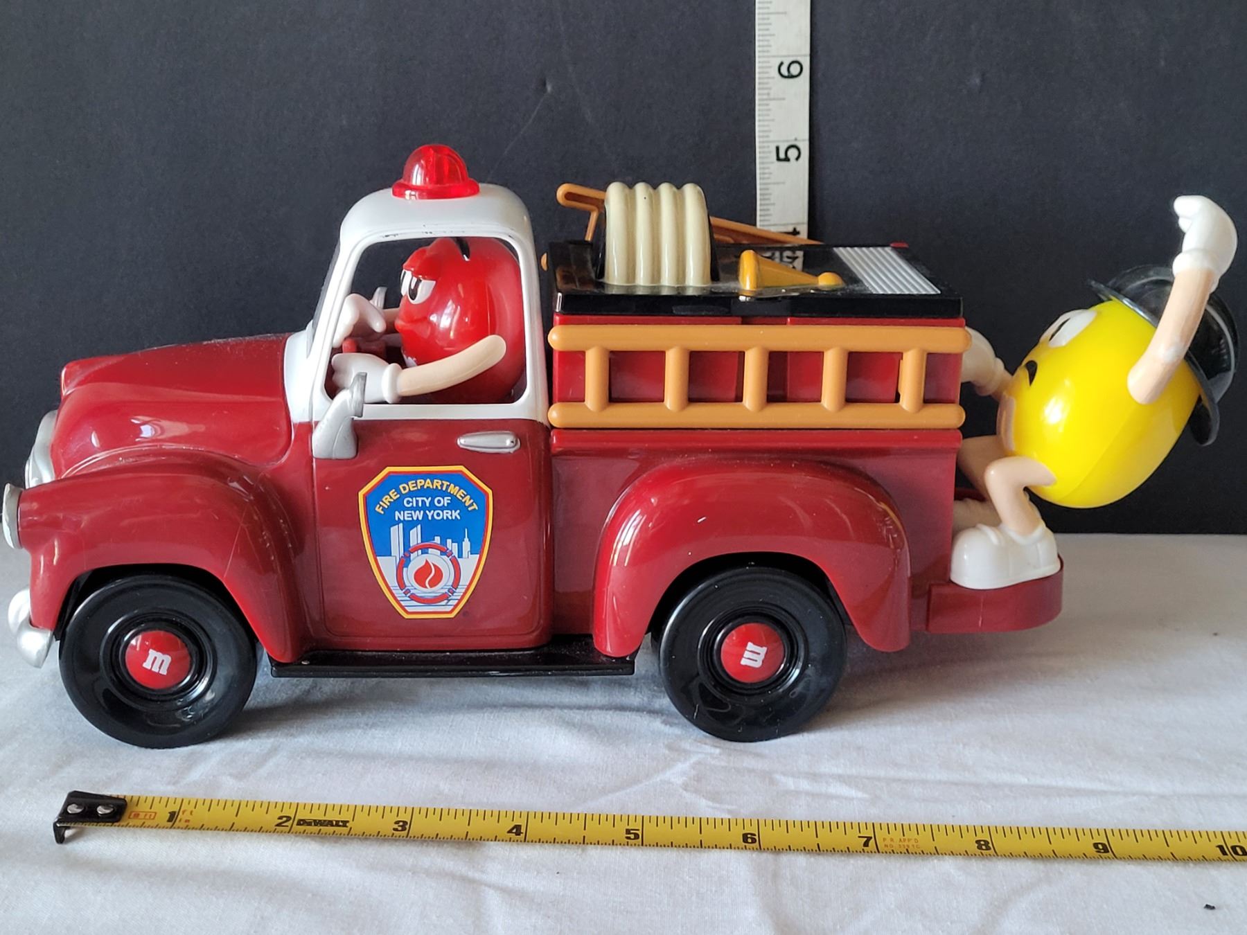 M&M fire engine candy dispenser.