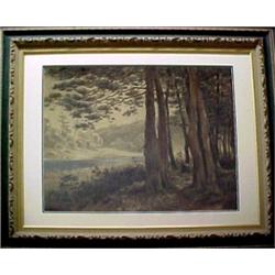 M. (Marion) Day, "The Upper Bronx River, signed (L.L.) M. Day and dated 1879, pastel and crayon, framed, 19th C. N. Y. city artist, image measures 24 3/4" x 32 3/4" (three tears)