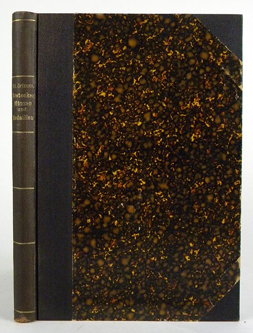 Grimm, Ed. MÜNZEN UND MEDAILLEN DER STADT ROSTOCK. Berlin: Verlag der Berliner Münzblatter, 1905. 8vo, contemporary maroon cloth-backed boards, gilt. (4), 148 pages; 10 fine Lichtdruck plates. Fine. Rare. Clain-Stefanelli 9633. Ex Stack's Numismatic Library.