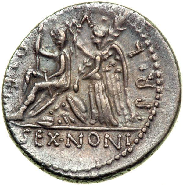 M. Nonius Sufenas, moneyer. AR Denarius minted at Rome,