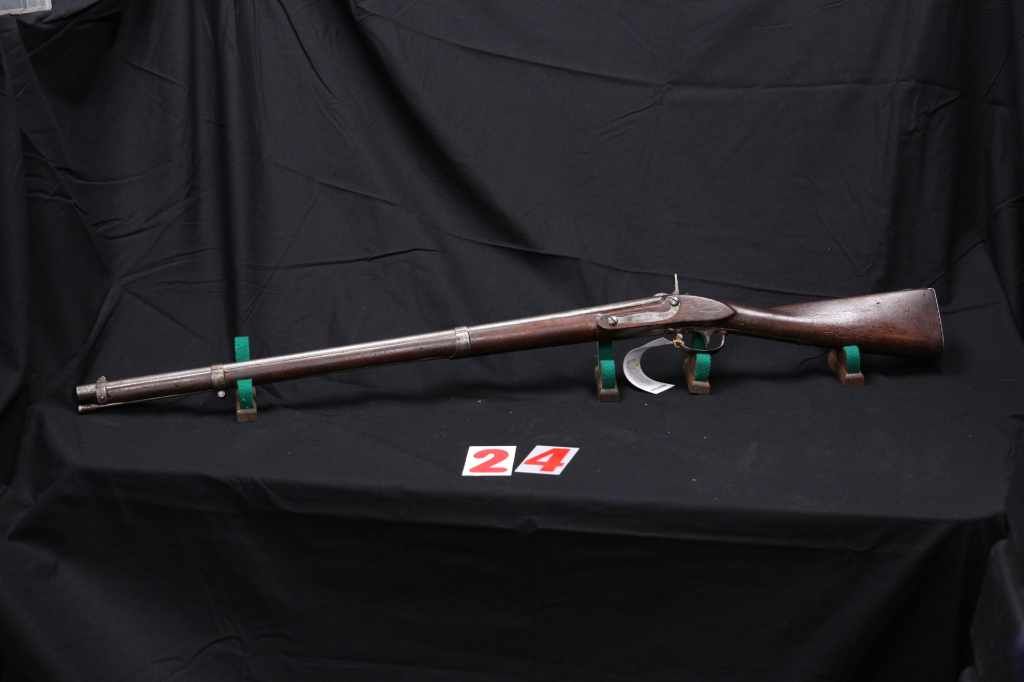 M.T. WICKHAM, MODEL 1830 CAP AND BALL CONVERTED. US MARKED AND NJ MARKED. HAS MULLENHAUER STAMPED IN STOCK TWICE. REAR SITE MISSING BUT FAIR OVERALL. LOOKS TO BE 69 CAL. WOULD BE A GOOD GUN TO DO SOME RESEARCH ON. (PRE 98)