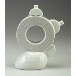 M. THUN for MEMPHIS porcelain teapot with speckled gray pattern over white, on oval foot. Stamped M. Thun per Memphis. 11 1/2" x 8 1/2" $450 - 650