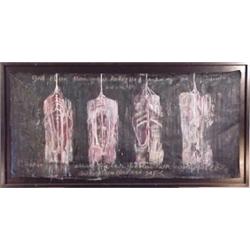 FAMILY PORTRAIT, oil with tar on unstretched canvas, 33 x 71 1/2", with inscriptions, framed. $1000/2000
