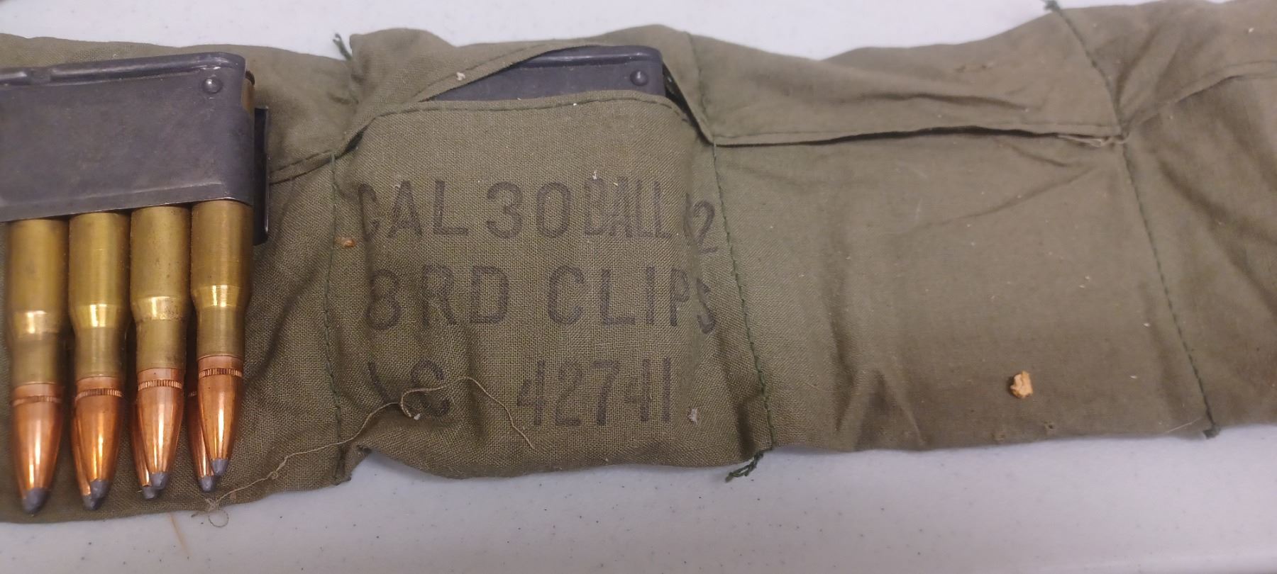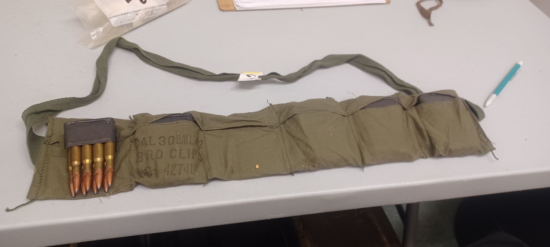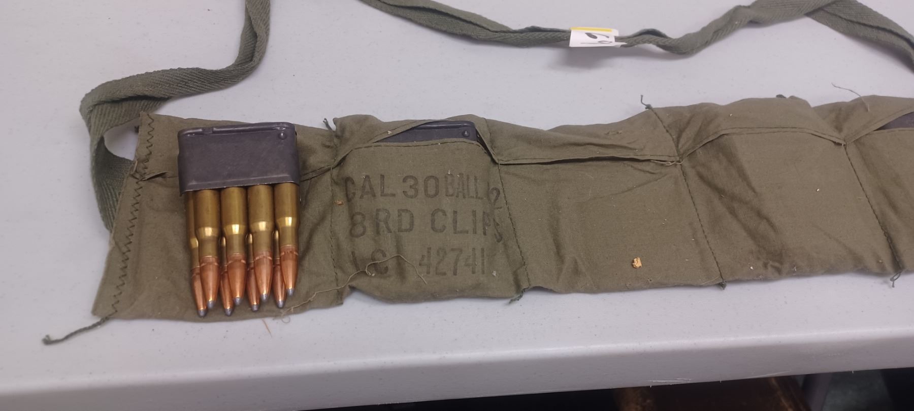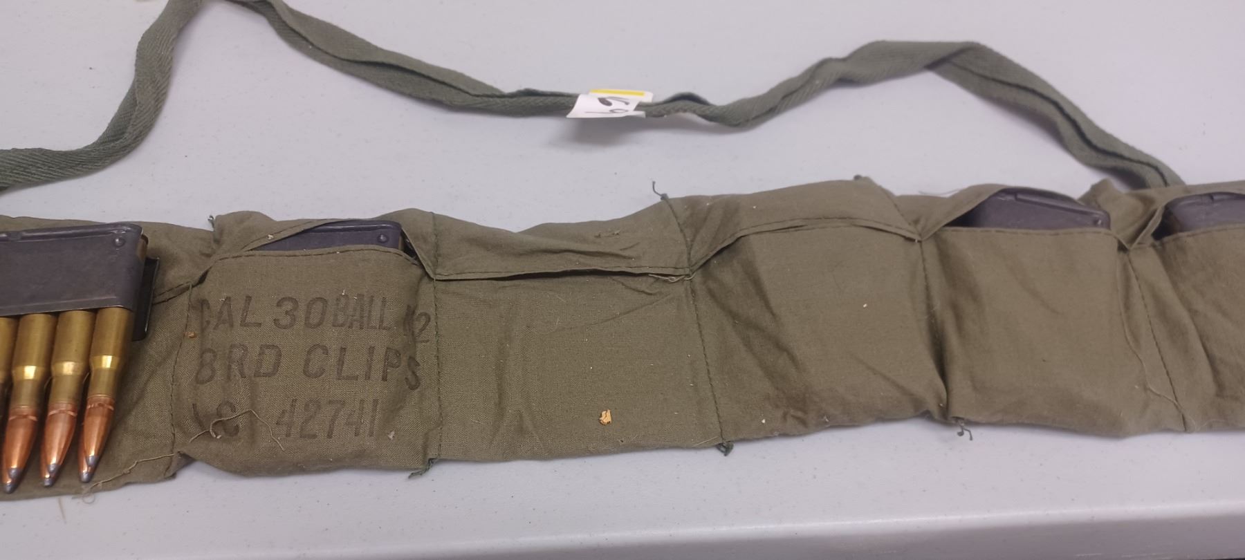 M1 GRAND AMMO BANDALIER C/W 5 - 8 SHOT LOADED CLIPS PAL REQD NO SHIPPING