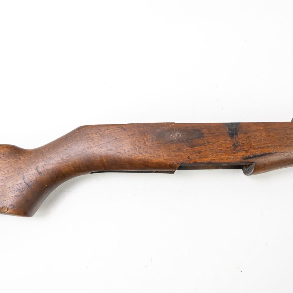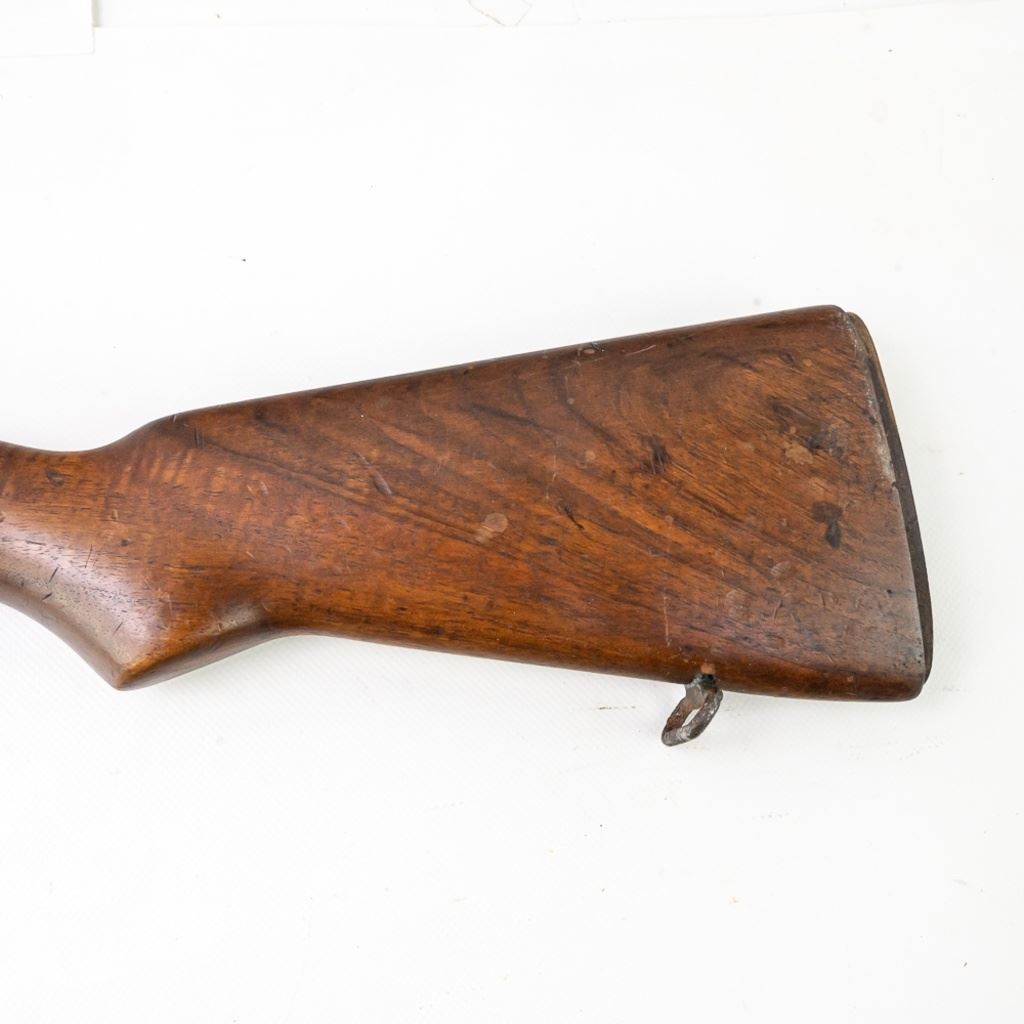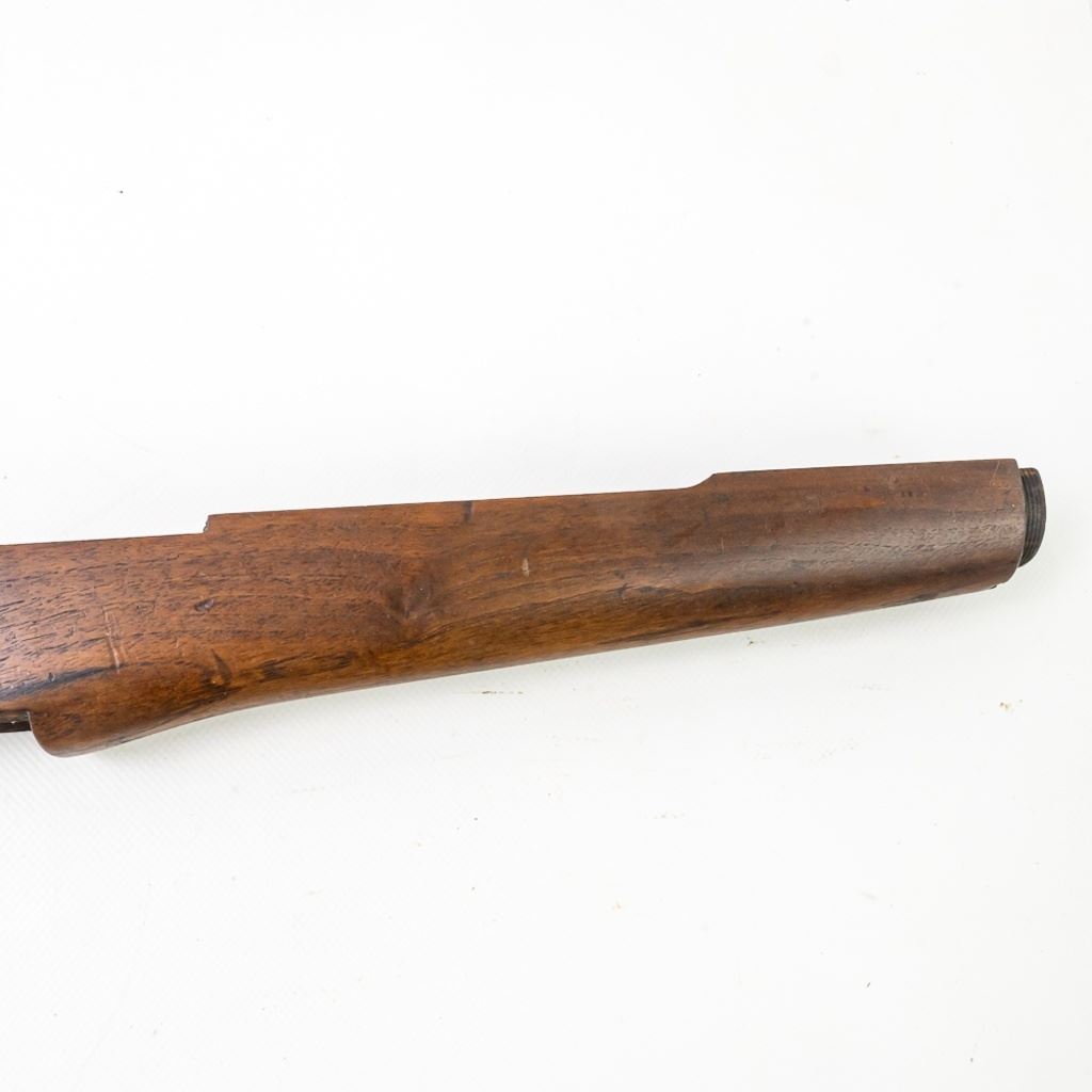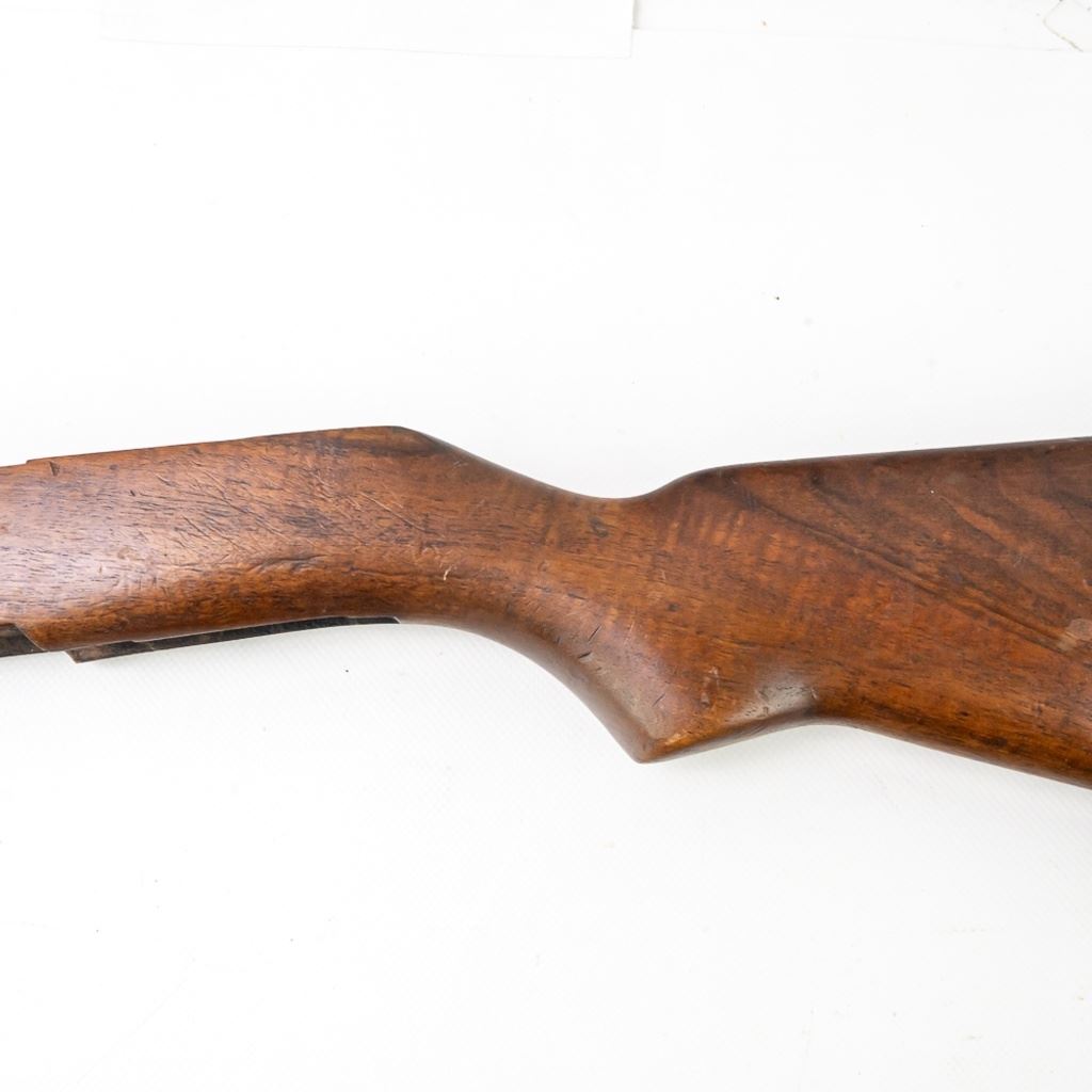 M1 Garand Wood Stock in very good condition with wear and some stains. It has a "MT" cartouche on the right side designating an Italian acquisition and a shortening of a 1/2" for a 308 re-calibering. It also has a painted rack # "155" on the right side.