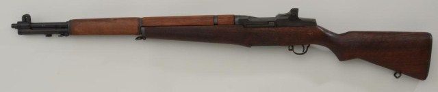 M1 Garand by Springfield Armory, #5376308 with National Match Markings; # scratch engraved into floor plate, barrel marked N.M., S.A., F6535448, 8-54, A214B. N.M on cocking lever, N.M. on stacking swivel, N.M.front sight, N.M/2 on front sight, N.M/2 on rear sight, N.M. left outside on barrel; stock shows eagle and stars cartouche with P inside pistol grip; fine to near excellent condition; little to almost no use. Stock isstill grainy or fuzzy; storage and light handling; no evidence of linseed oil or rubbing since manufacture; bright bore; a strong 9.8-9.9 as arsenal re-built for Match. From a WW II Officer’s Estate. Est.:$2,000-$4,000.