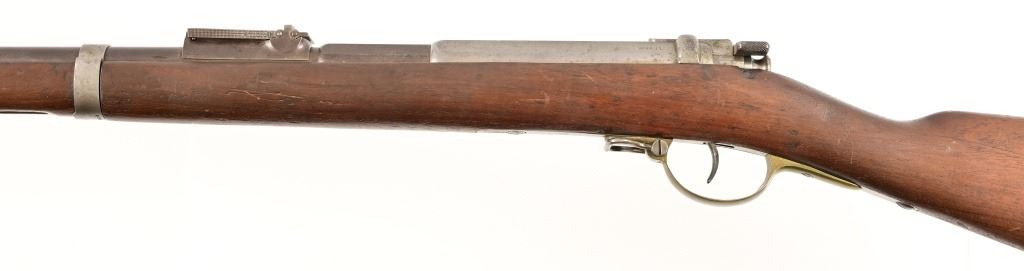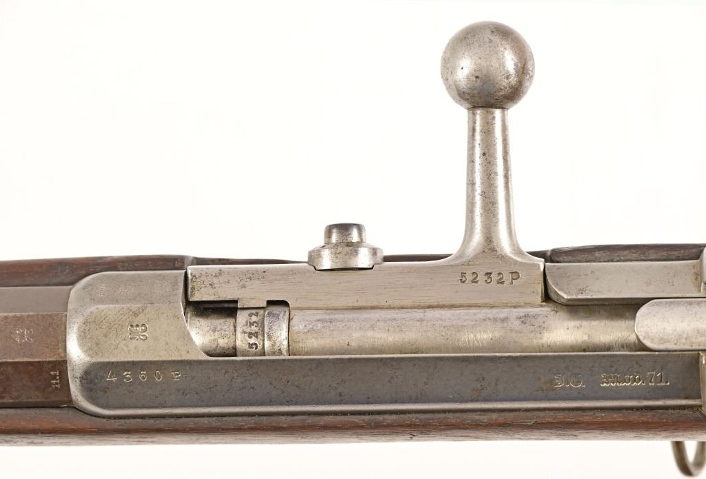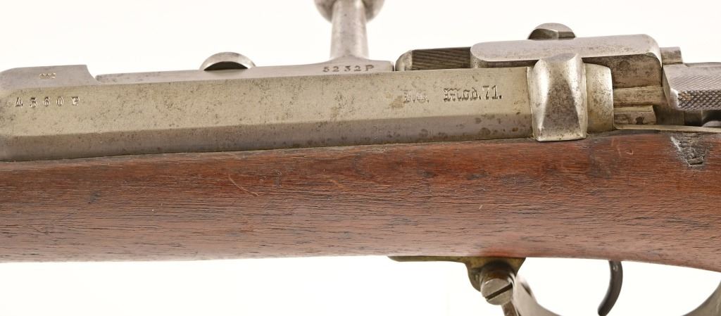 SN 4260P. Gewehr Model 71 Mauser. 11mm caliber. 33 3/4" barrel, decent bore. Wood is very good. Antique.