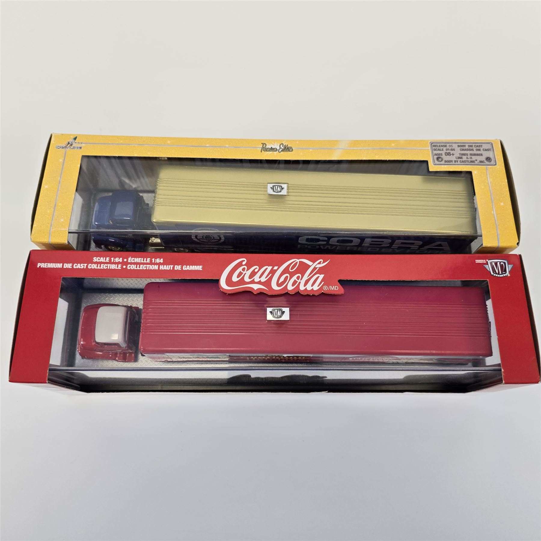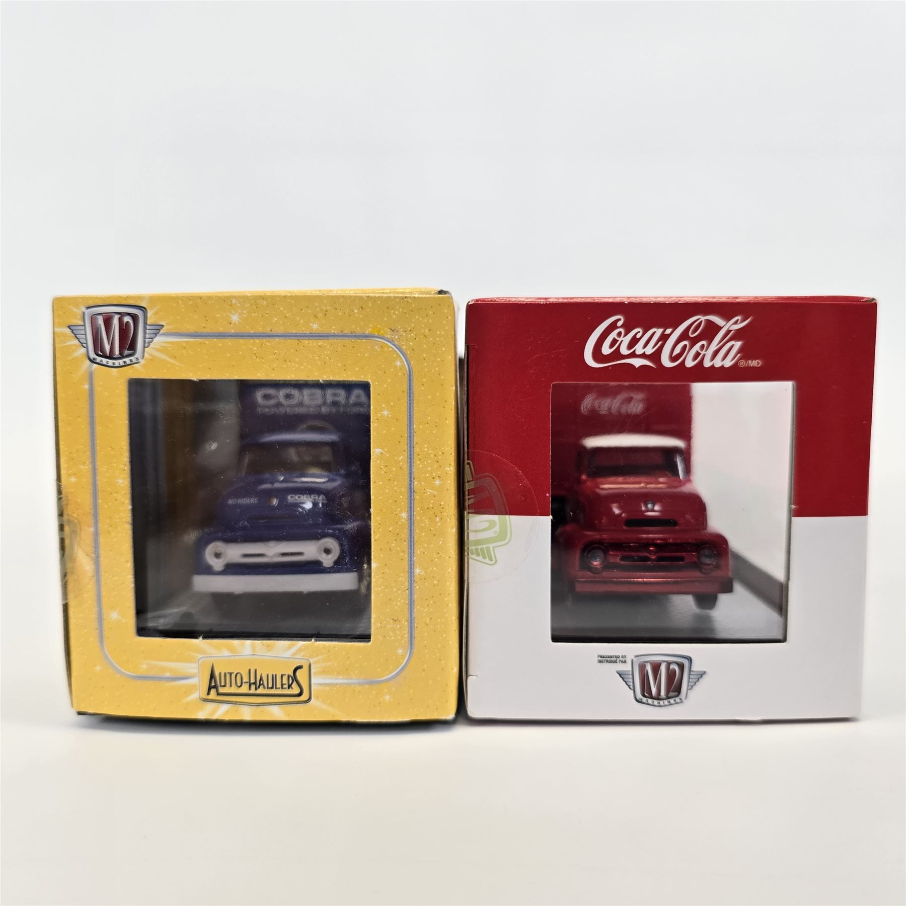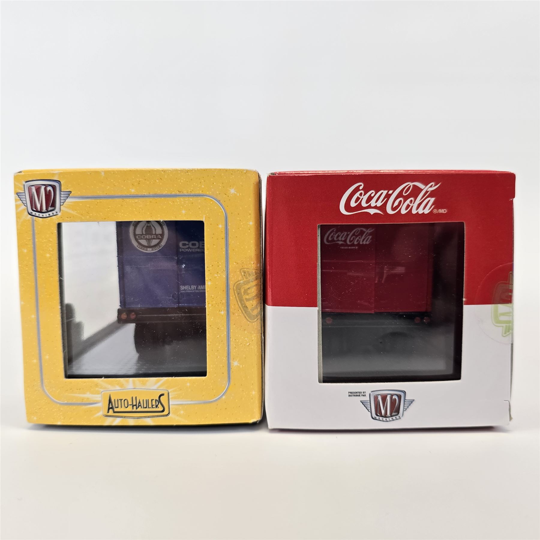 M2 Auto Hauler Chase Pair, includes a Coca-Cola hauler and a Ford Cobra Hauler