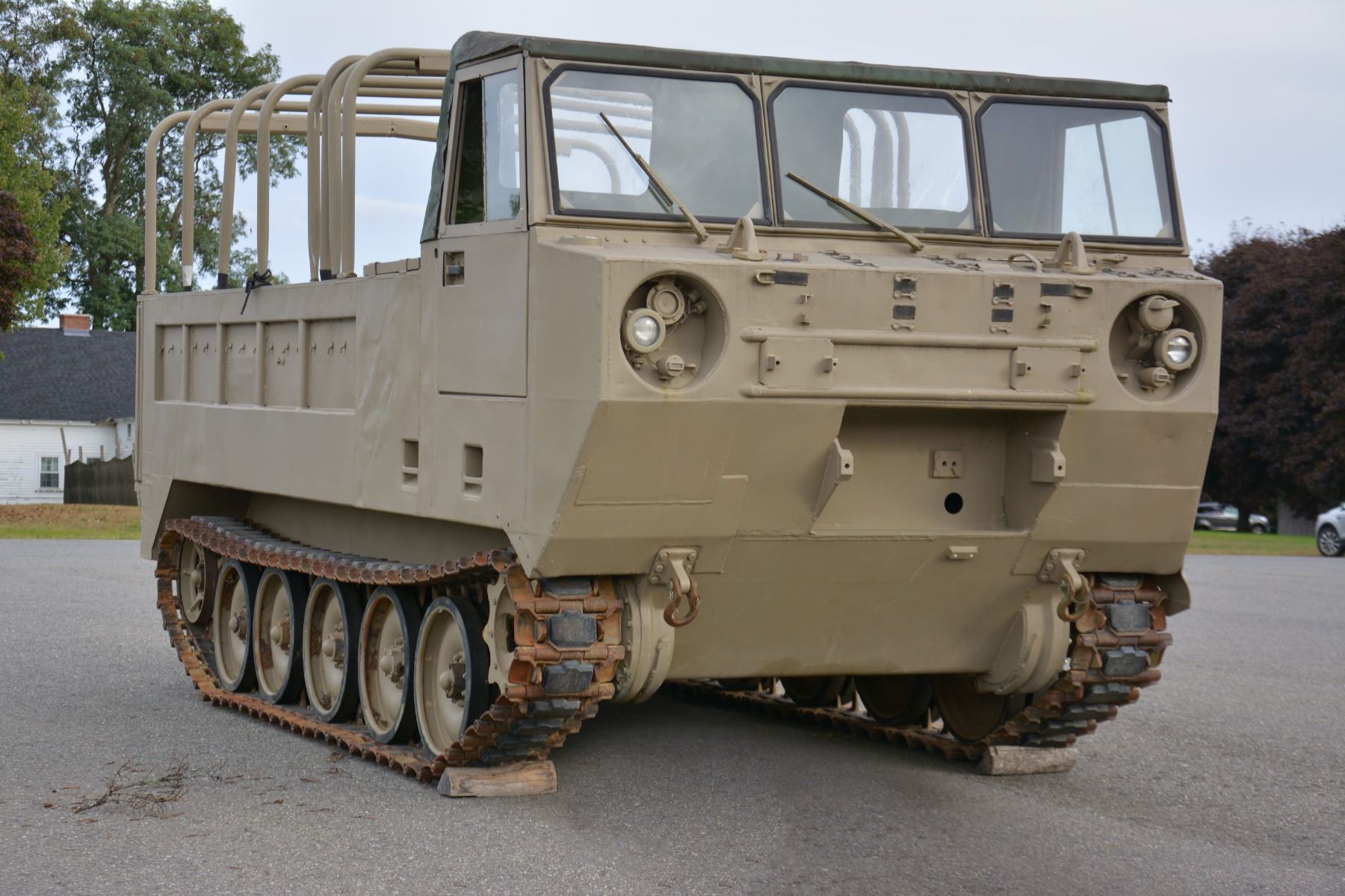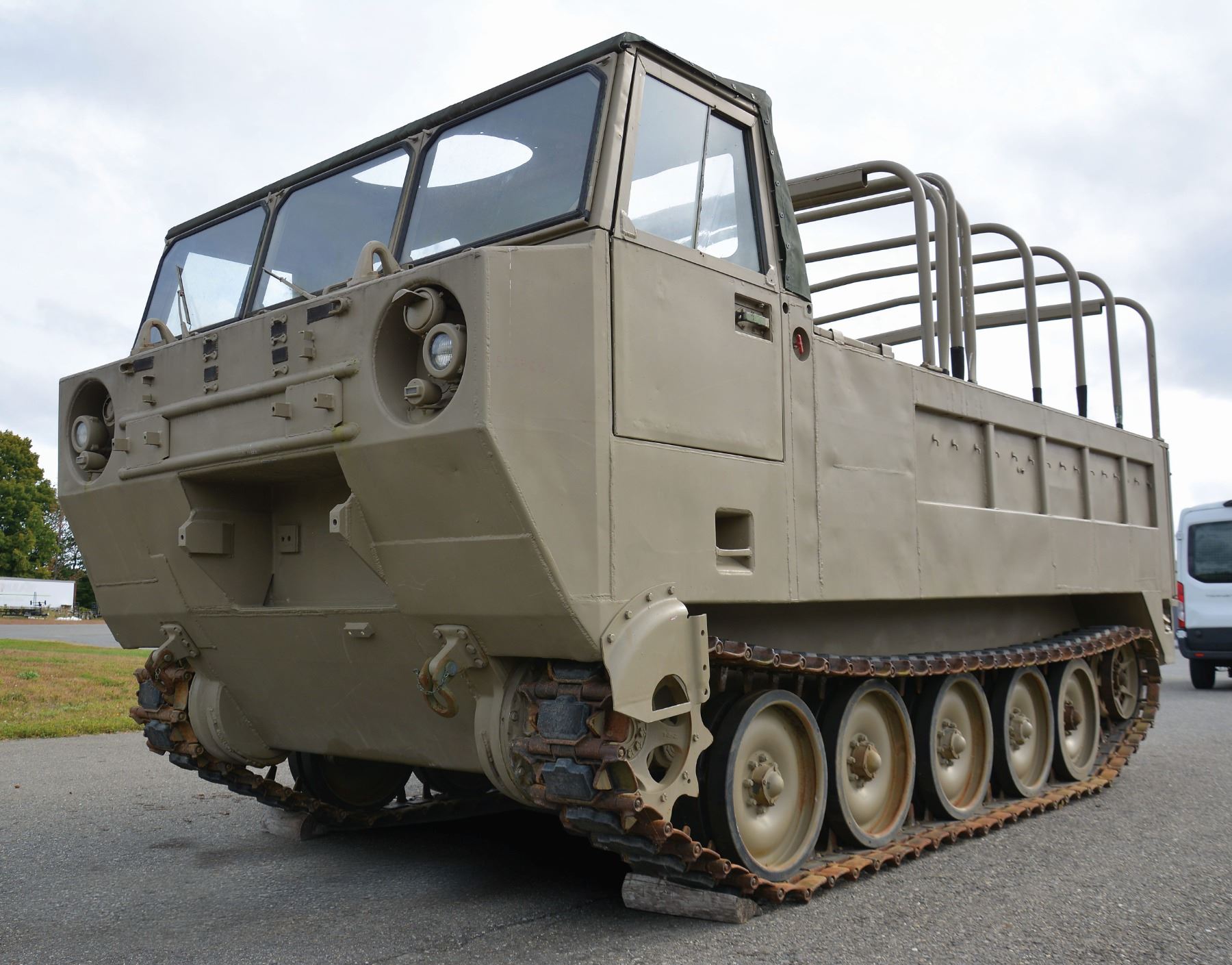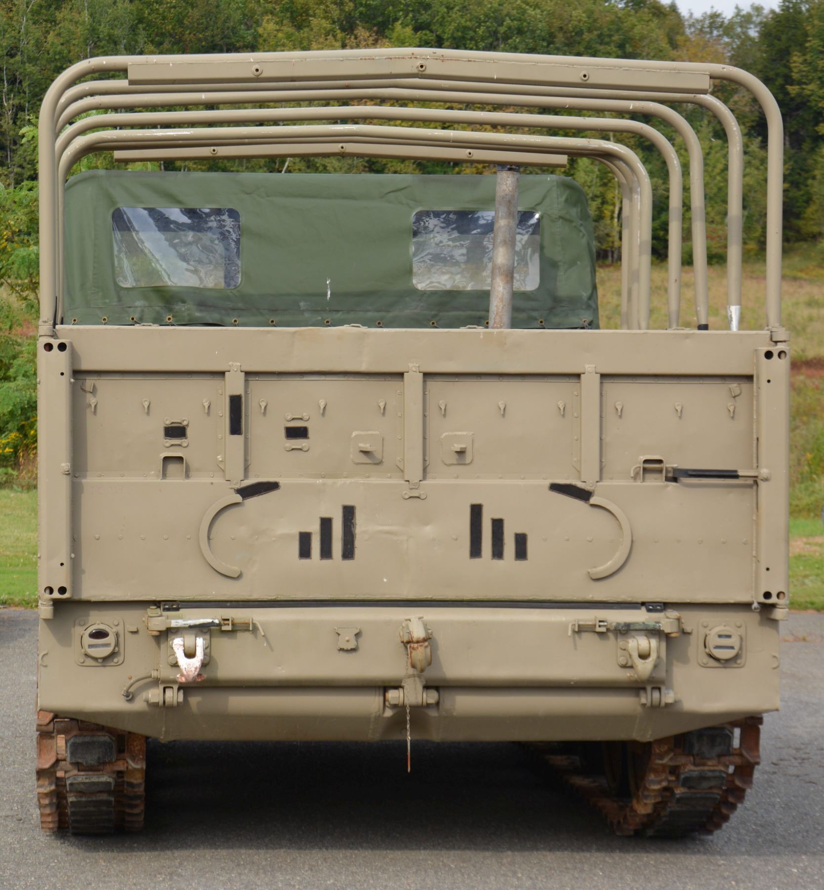 CARRIER. VIN # C011. The M548A1 is a versatile 6-ton tracked, amphibious cargo vehicle used by the U.S. military, primarily designed to support logistical operations over various terrain. Introduced in the 1960s, it is based on the chassis of the M113 armored personnel carrier, providing a robust and reliable platform for transporting cargo, ammunition, and equipment. Some versions of the M548A1 are fully amphibious, & on water it is propelled by its tracks. Due to its size it has a low ground pressure signature & performs very well in rugged terrain including mud & snow. The payload capacity is approximately 6 tons. The M58A1 has been used by the United States in several wars & conflicts including the Vietnam War & Gulf War & its legacy continues in various roles within the armed forces and allied nations today. Tan paint externally. Canvas cab cover cut to accept optional ring mount (not included). Body includes skeleton posts for adding optional canvas cargo cover (not included). Rubber pavement pads on tracks. CONDITION: Vehicle has recently undergone almost $3,000 in maintenance work including new batteries. Garage states that vehicle dash lights up, engine turns over & starts w/ starting fluid bud does not remain running. Fuel appears to be delivered to top of engine, so the next logical step is clean injectors to freshen it up. Tracks appear nice, w/ rubber pads present. This vehicle is being sold as is, where is. (02-23310/JZ). $10,000-20,000.