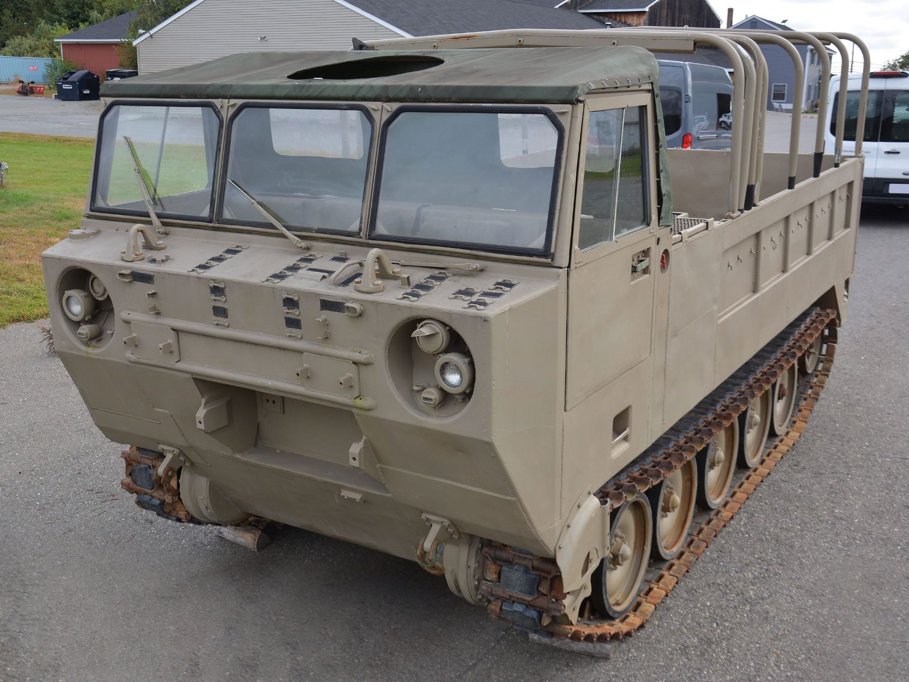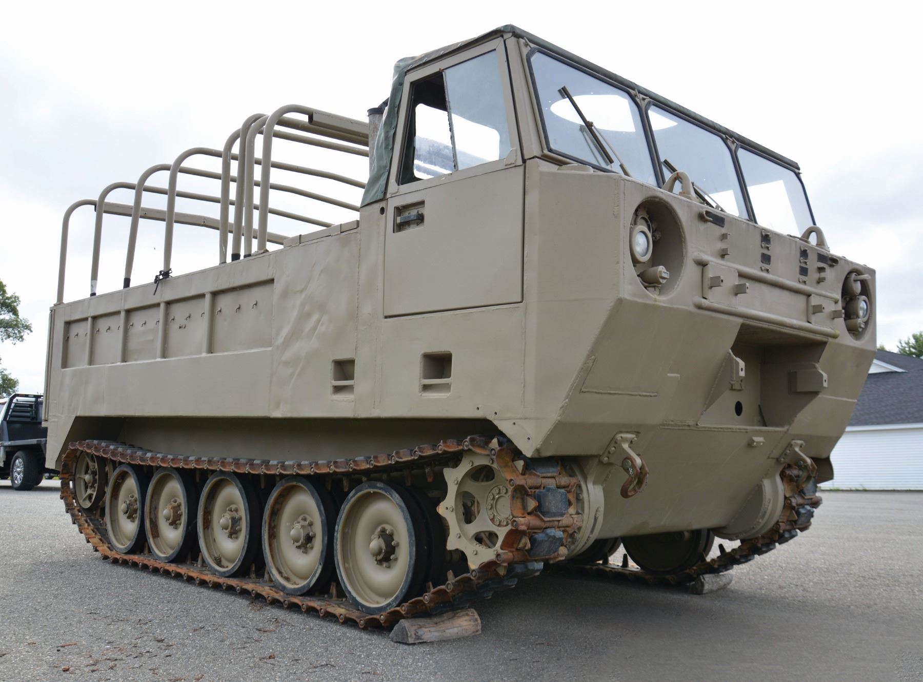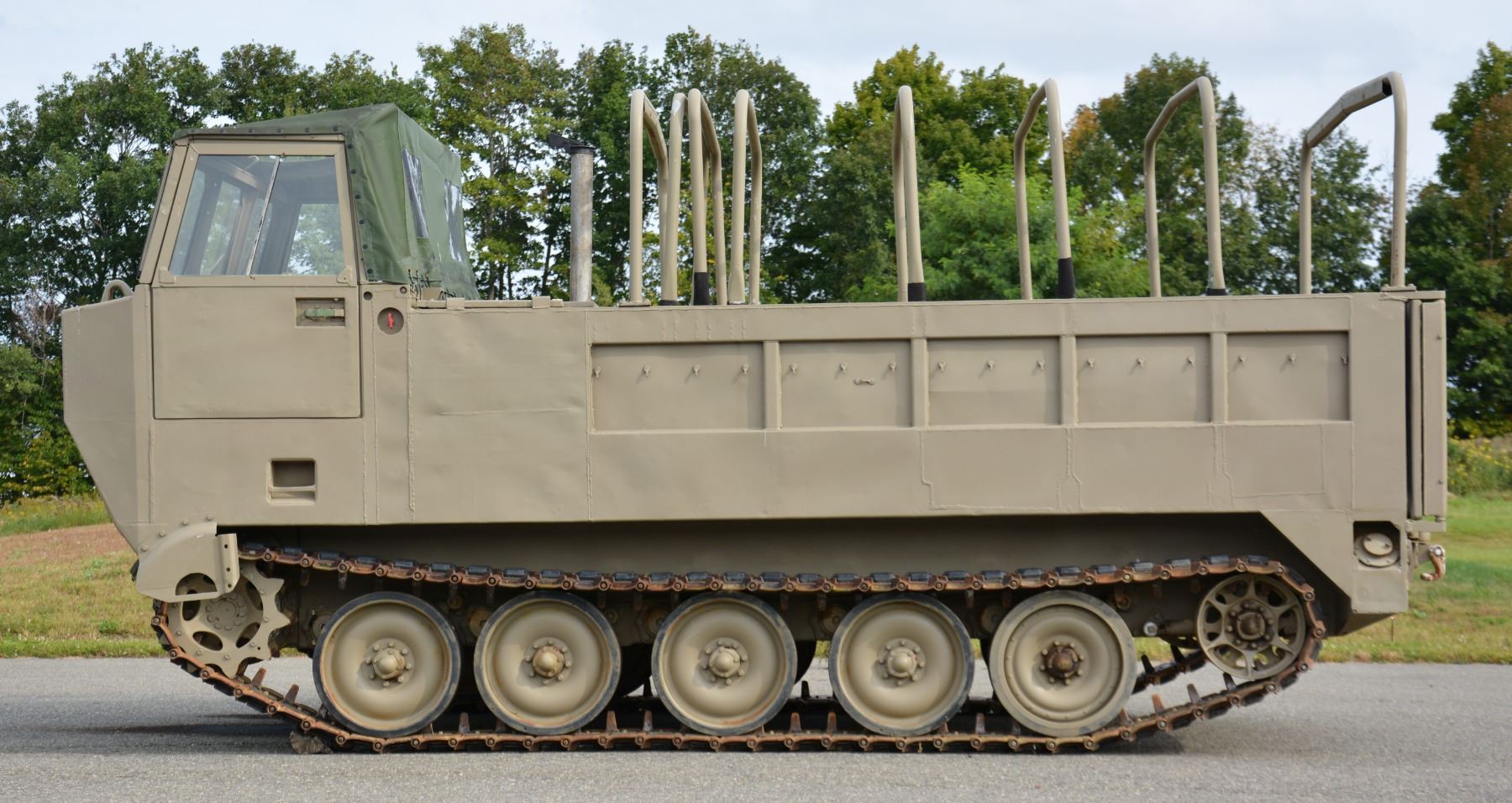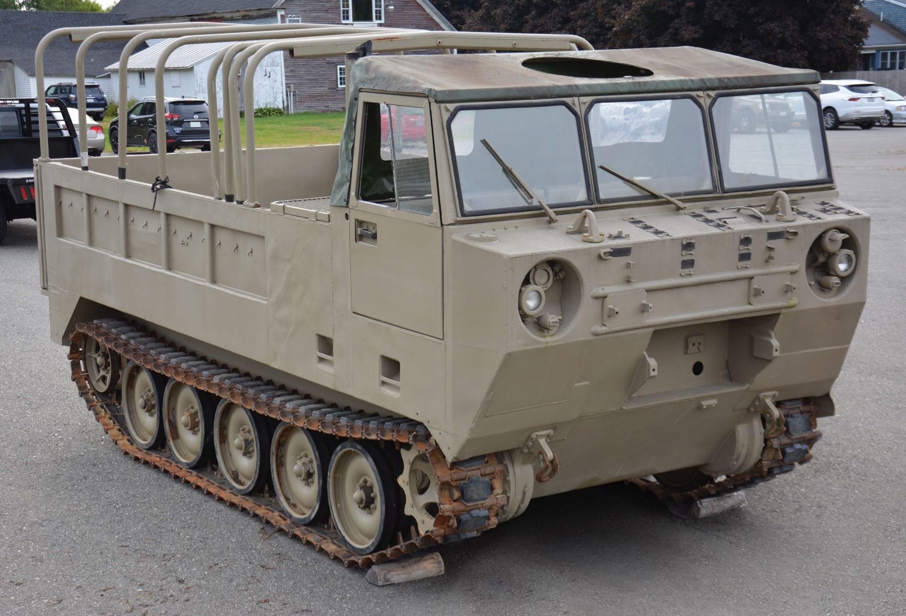 CARRIER. VIN # C011. The M548A1 is a versatile 6-ton tracked, amphibious cargo vehicle used by the U.S. military, primarily designed to support logistical operations over various terrain. Introduced in the 1960s, it is based on the chassis of the M113 armored personnel carrier, providing a robust and reliable platform for transporting cargo, ammunition, and equipment. Some versions of the M548A1 are fully amphibious, & on water it is propelled by its tracks. Due to its size it has a low ground pressure signature & performs very well in rugged terrain including mud & snow. The payload capacity is approximately 6 tons. The M58A1 has been used by the United States in several wars & conflicts including the Vietnam War & Gulf War & its legacy continues in various roles within the armed forces and allied nations today. Tan paint externally. Canvas cab cover cut to accept optional ring mount (not included). Body includes skeleton posts for adding optional canvas cargo cover (not included). Rubber pavement pads on tracks. CONDITION: Vehicle has recently undergone almost $3,000 in maintenance work including new batteries. Garage states that vehicle dash lights up, engine turns over & starts w/ starting fluid bud does not remain running. Fuel appears to be delivered to top of engine, so the next logical step is clean injectors to freshen it up. Tracks appear nice, w/ rubber pads present. This vehicle is being sold as is, where is. (02-23310/JZ). $10,000-20,000.