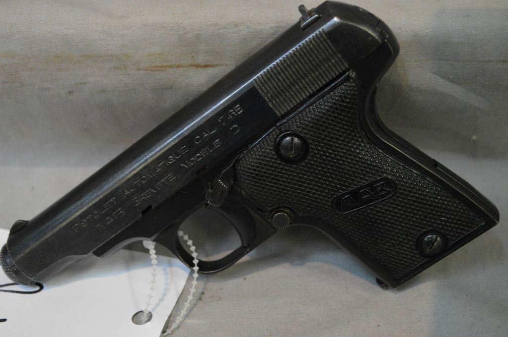 MAB Model C 7.65 MM cal 7 Shot Semi Auto Pistol w/ 83 mm bbl [ blued finisih, fixed sights, MAB checkered grips ] Ser # 66099 12-6 Prohib Cert # 18327820