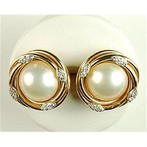 This pair of Vintage Earrings is Circa 1960 and they are in Superb condition. Each 14k Yellow Gold Earring features a beautiful MABE PEARL 10MM across. The Pearl is surrounded by 14k Gold swirls set with Diamonds. There are 16 Diamonds with a Total Weight = .16 Carats. The Earrings measure 3/4" across and they ARE stunning.