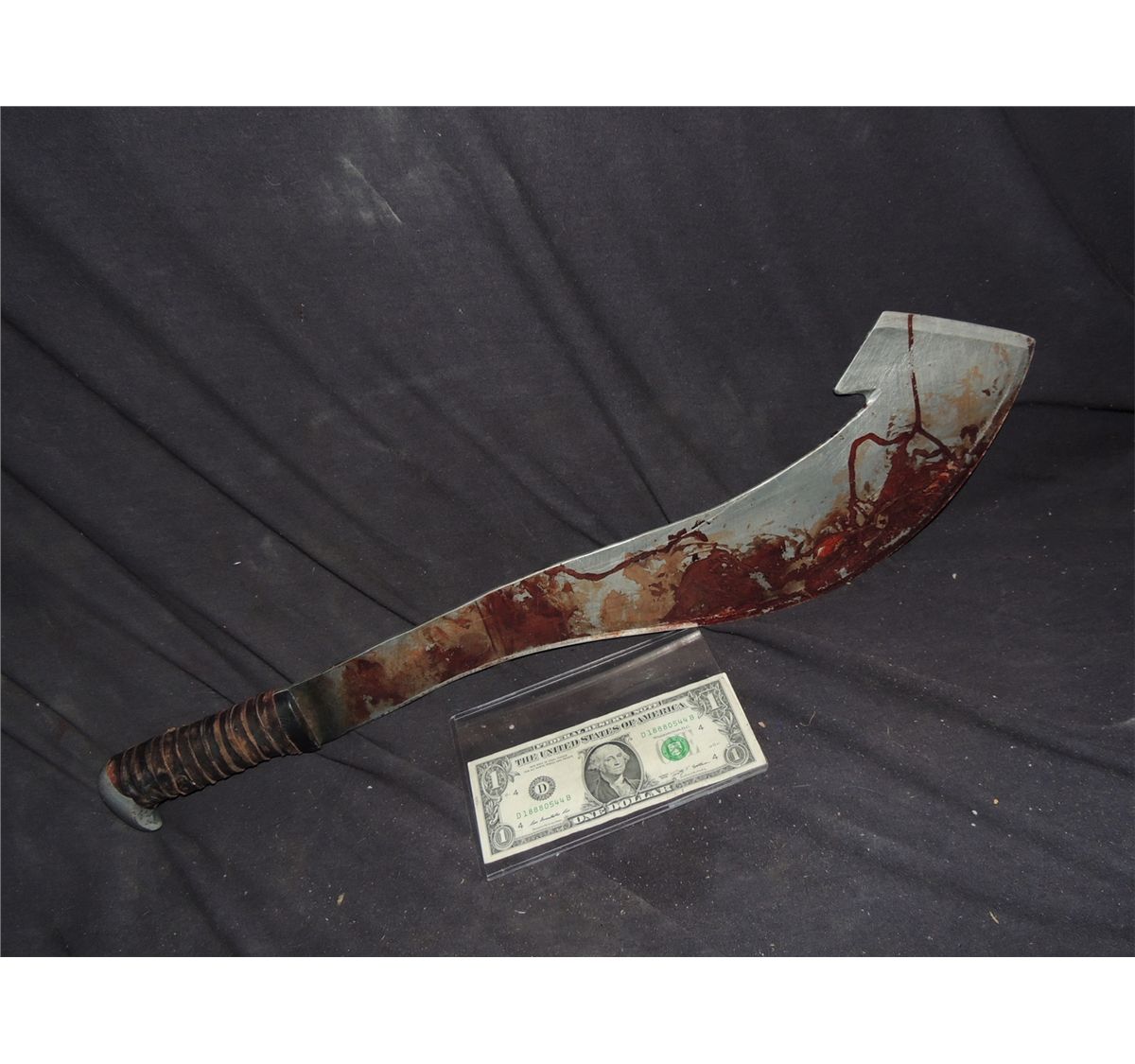 This is the Screen Used & Matched Hero Bloody Machete used throughout the Cult Classic MACHETE JOE. This is the one also seen on the poster and cover art, and is signed "MACHETE JOE, PAUL CAMPBELL 09".