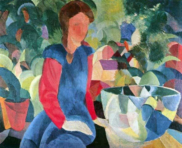 Artist: MACKE - Title: Girls With Fish Bell - Medium: Fine Art Reproduction Giclee on Canvas - Image Size: Approximately 16.25 inches x 20 inches - Unframed on Unstretched Canvas - Biography: MACKE (3 January 1887 - 26 September 1914) was a German Expressionist painter. He was one of the leading members of the German Expressionist group Der Blaue Reiter (The Blue Rider). He lived during a particularly innovative time for German art: he saw the development of the main German Expressionist movements as well as the arrival of the successive avant-garde movements which were forming in the rest of Europe. Like a true artist of his time, MACKE knew how to integrate into his painting the elements of the avant-garde which most interested him.