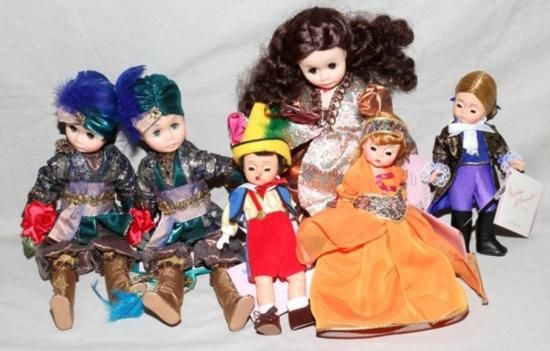 MADAME ALEXANDER ~BEAUTY & THE BEAST~ & ~PINOCCHIO~ DOLLS, SIX:Including Beauty (140486), and Beauty (1316), Beast (140487) and 2 other Beasts (1317) and Pinocchio (477). All are in original boxes.