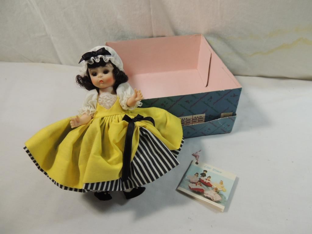 MADAME ALEXANDER VINTAGE ORIGINAL BOX COLLECTIBLE GREAT CONDITION. SMALL VINYL DOLL ORIGINAL DRESS SLEEP EYES. MOVEABLE, DRESSED IN CLOTHES FROM THE COUNTRY REPRESENTED AS SHOWN SEE PHOTO FOR MORE DETAILS.