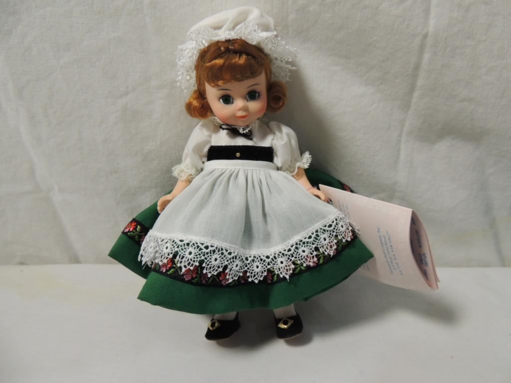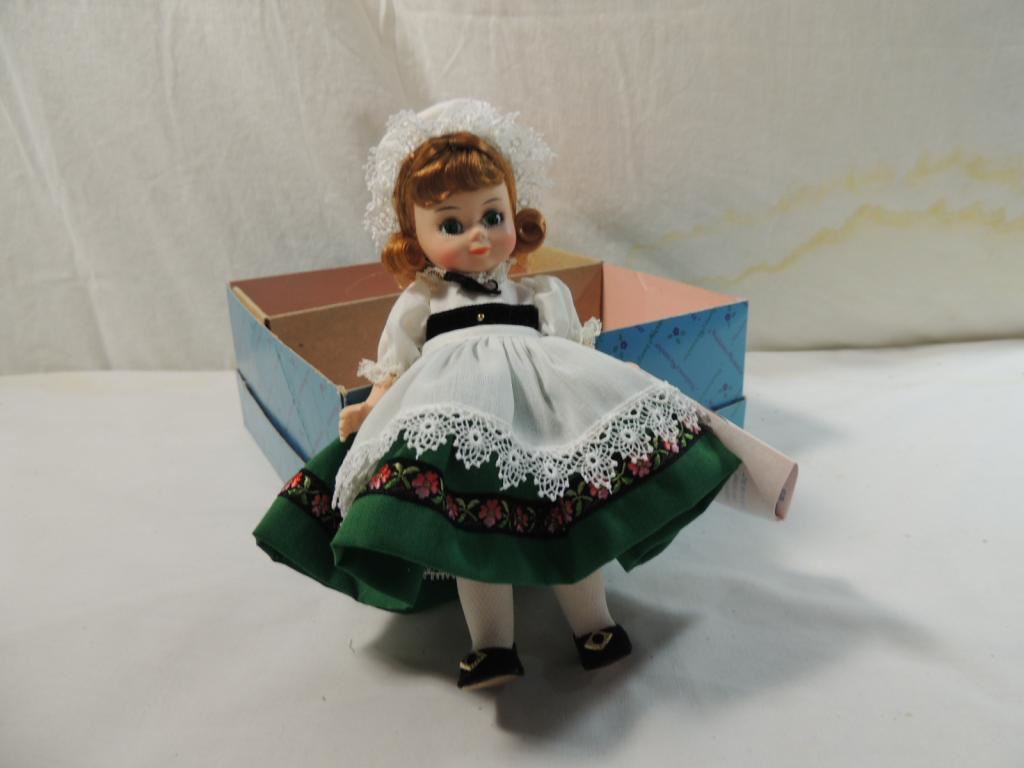 MADAME ALEXANDER INTERNATIONAL IRELAND DOLL. GREAT CONDITION ORIGINAL BOX SMALL VINYL DOLL LIKE NEW DRESSED AUTHENTICALLY FOR IRELAND AS SHOWN SEE PHOTO FOR MORE DETAILS.