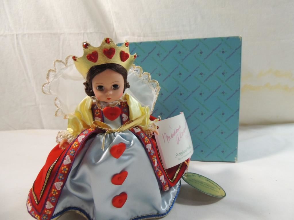 MADAME ALEXANDER QUEEN OF HEARTS STORYBOOK STORYLAND DOLLS ALICE IN WONDERLAND SERIES SLEEP EYES BEAUTIFUL ELEGANT DRESS VINTAGE VINYL DOLL ORIGINAL BOX COLLECTIBLE AS SHOWN SEE PHOTO FOR MORE DETAILS.
