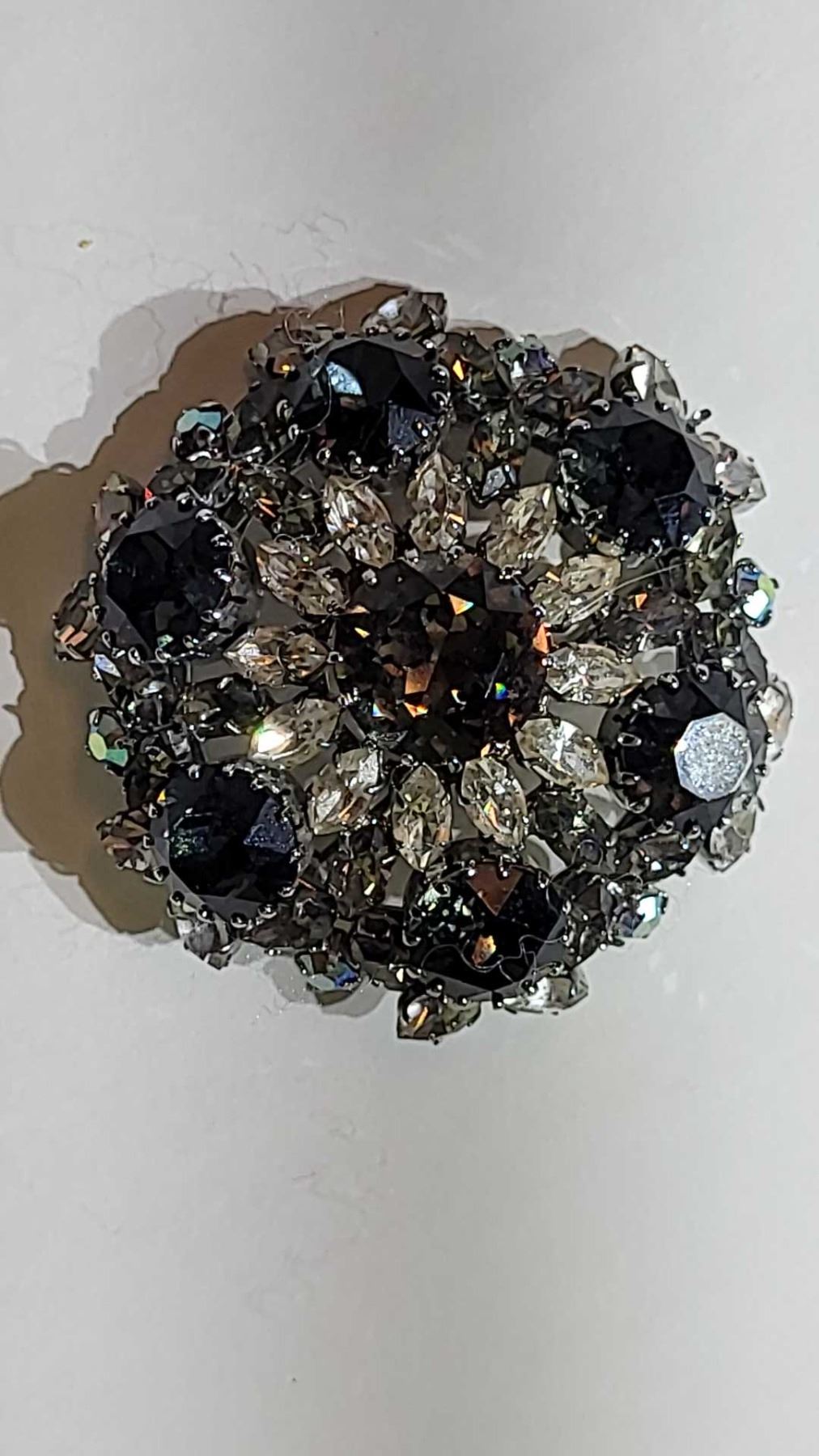 BIG BOLD AND BEAUTIFUL. BLACK, SMOKEY QUARTZ, FOREST GREEN AND CLEAR RHINESTONES. SEE PICTURES