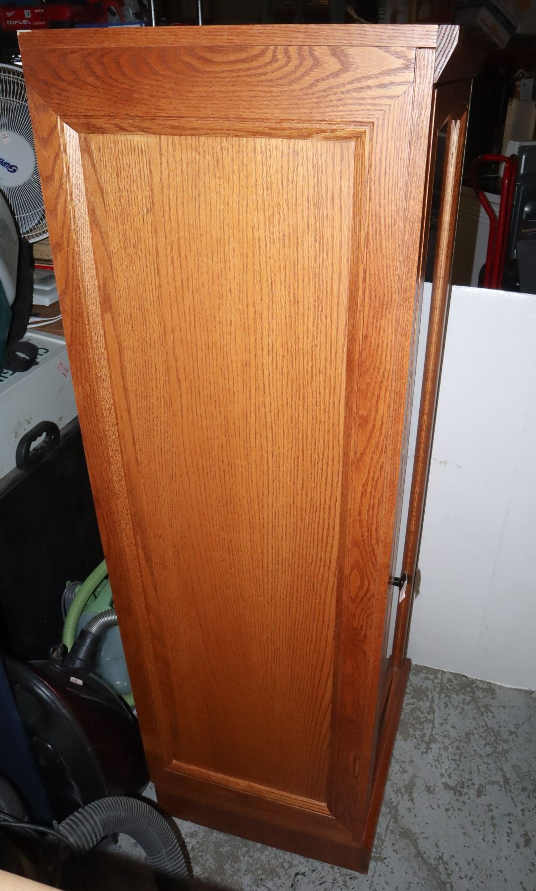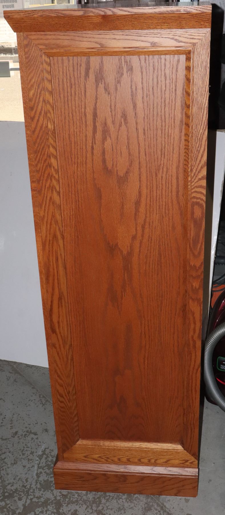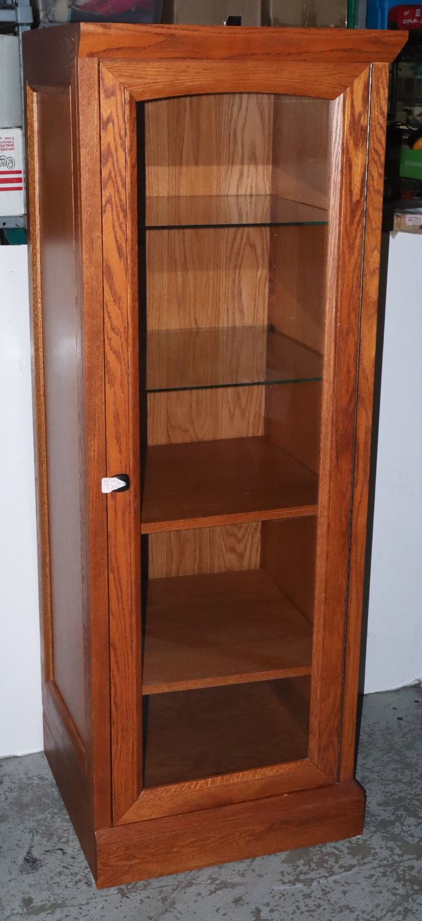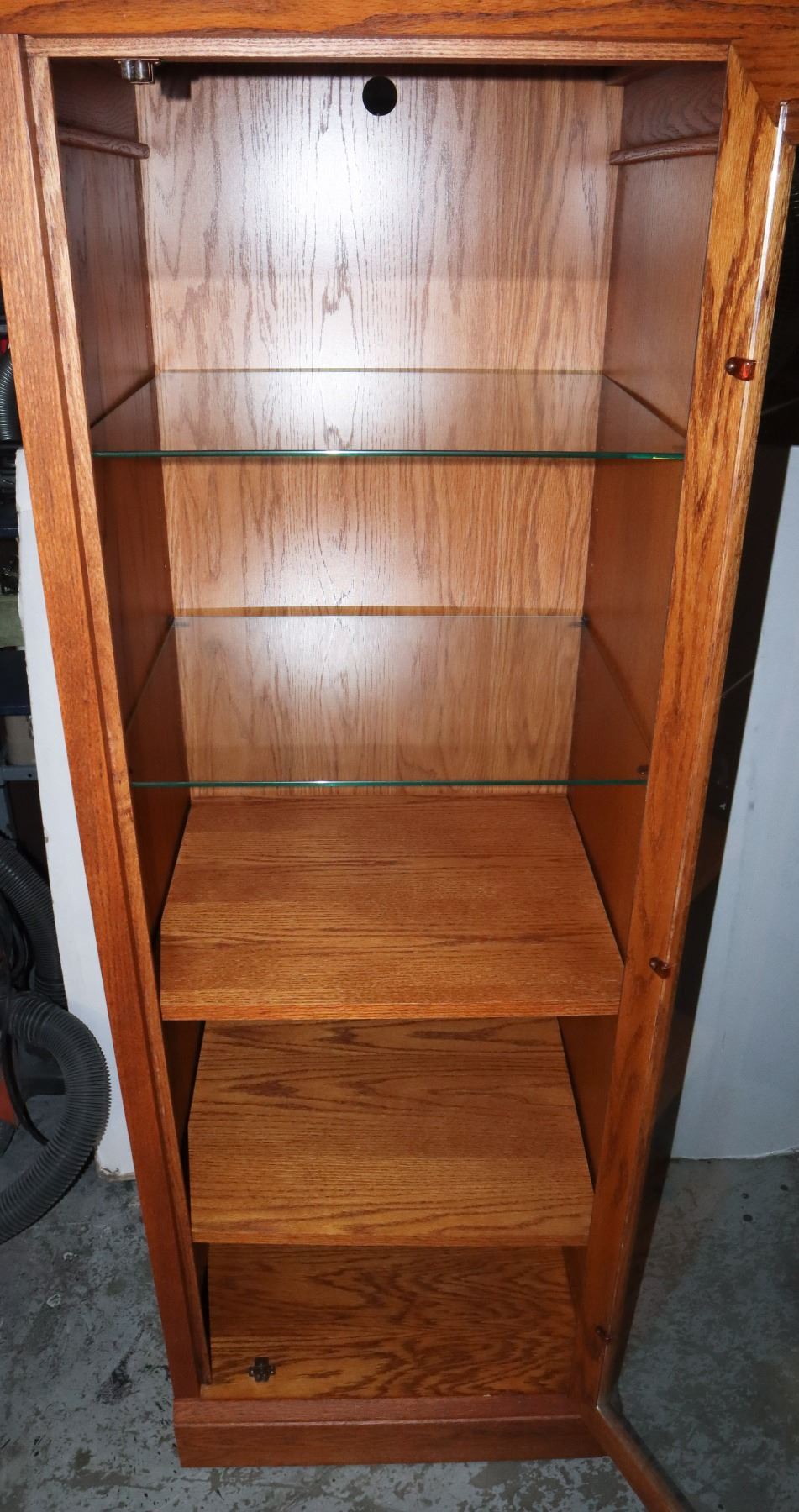 19.5" DEEP X 21" WIDE. TWO GLASS SHELVES AND TWO WOOD SHELVES