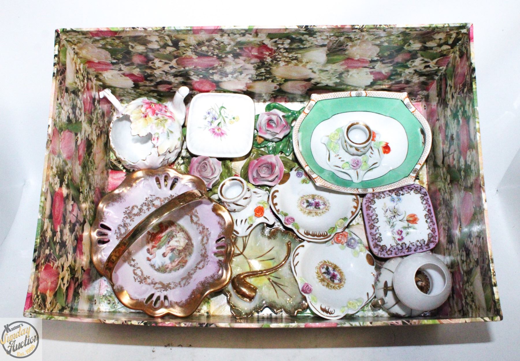 PORCELAIN TRINKET DISHES/BOWLS, LIDDED TRINKET DISHES, PORCELAIN CANDLE HOLDERS + MUCH MORE IN FLOWER BOX**ALL ITEMS MUST BE REMOVED BY 5PM SATURDAY, JULY 19TH 2025. ALL REMAINING ITEMS WILL BE SUBJECT TO A $6.00 PER DAY STORAGE CHARGE. ANY ITEMS REMAINING AFTER MONDAY, AUGUST 4TH, 2025 WILL BE CONSIDERED FORFEITED. NO REFUNDS WILL BE ISSUED FOR FORFEITED ITEMS. TO SCHEDULE A PICK UP APPOINTMENT CLICK HERE
