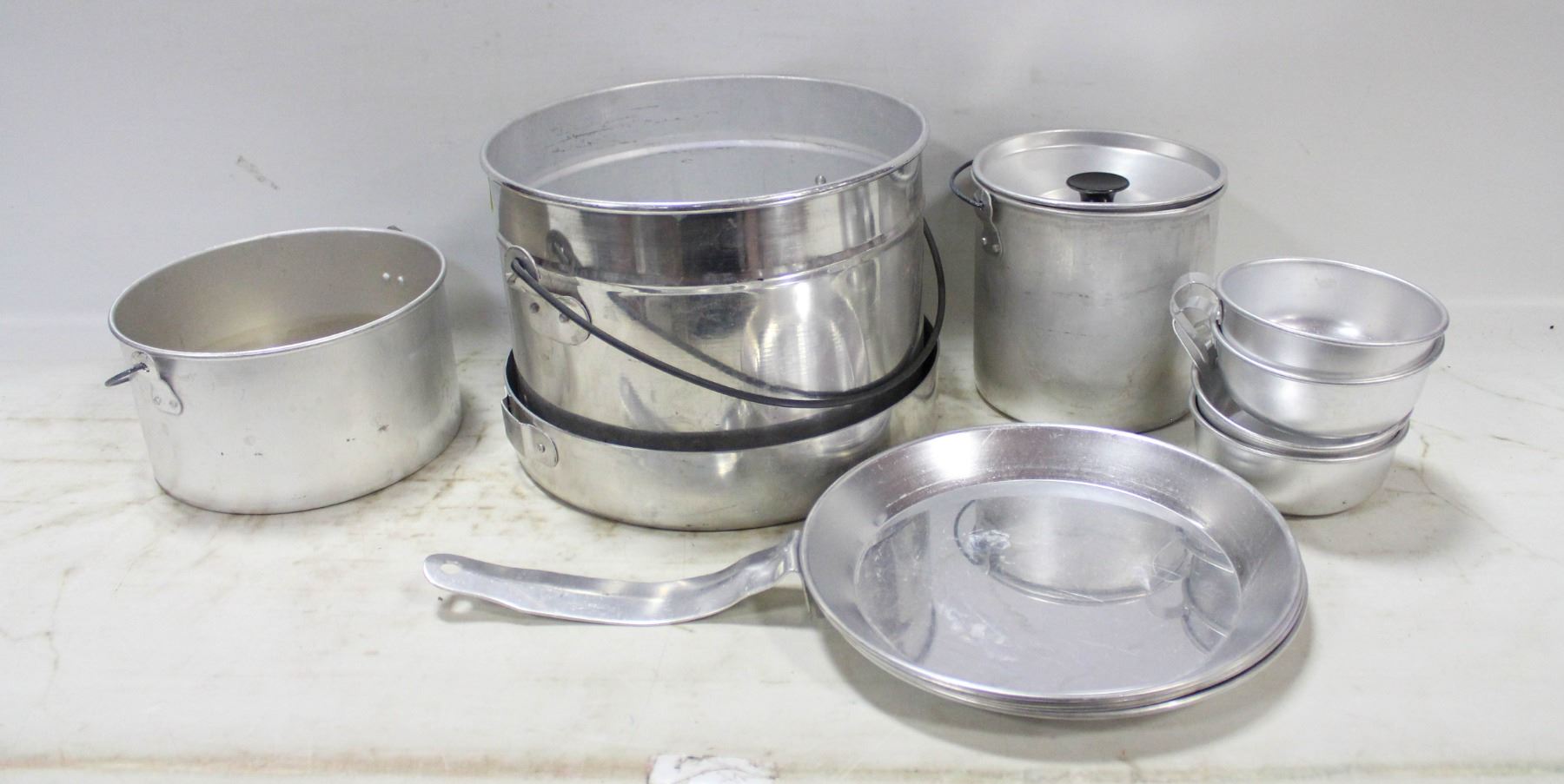 FIELD COOKINGWARE SET COMPLETE WITH HANDLE + 4 HANDLED MUGS**ALL ITEMS MUST BE REMOVED BY 5PM SATURDAY, JULY 19TH 2025. ALL REMAINING ITEMS WILL BE SUBJECT TO A $6.00 PER DAY STORAGE CHARGE. ANY ITEMS REMAINING AFTER MONDAY, AUGUST 4TH, 2025 WILL BE CONSIDERED FORFEITED. NO REFUNDS WILL BE ISSUED FOR FORFEITED ITEMS. TO SCHEDULE A PICK UP APPOINTMENT CLICK HERE