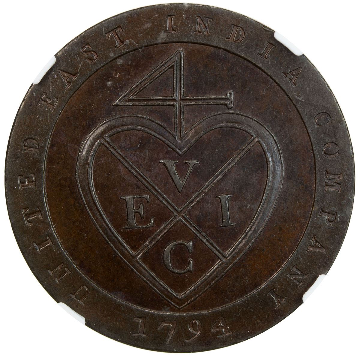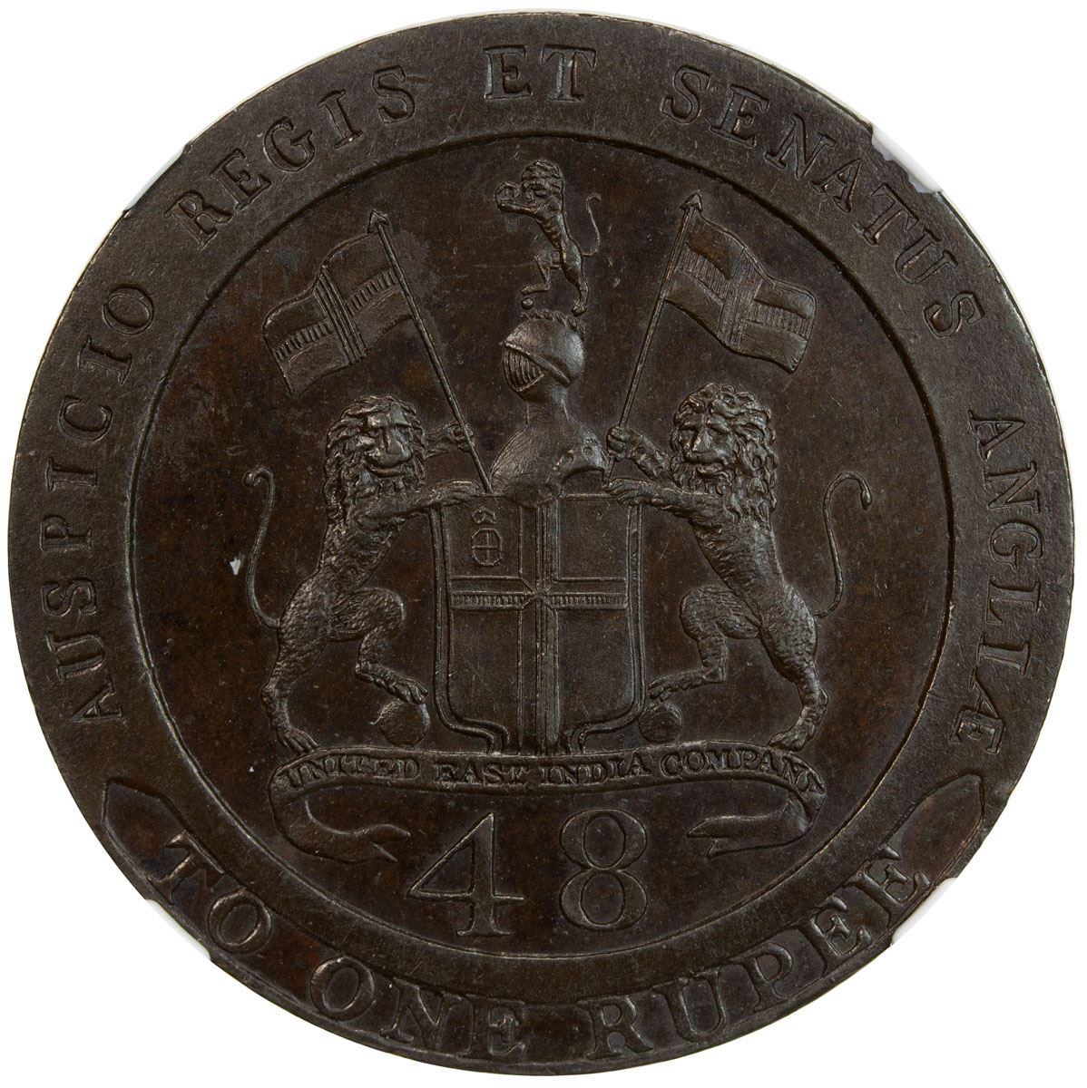 MADRAS PRESIDENCY: AE 1/48 rupee, Soho mint, 1794. NGC PF63