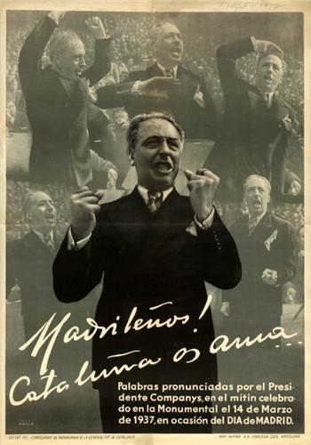 AGULLO. MADRILEÑOS! CATALUÑA OS AMA. 1937. 110x77cm. (43x30,2in.). Fotomontaje. A-.