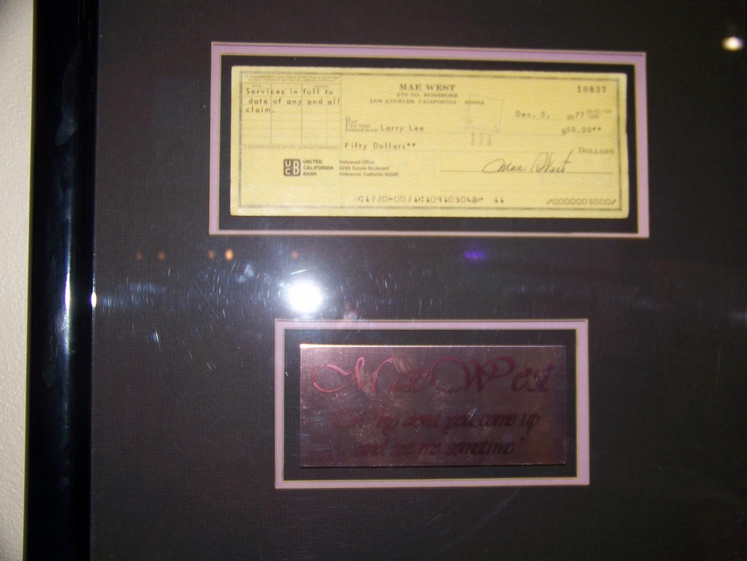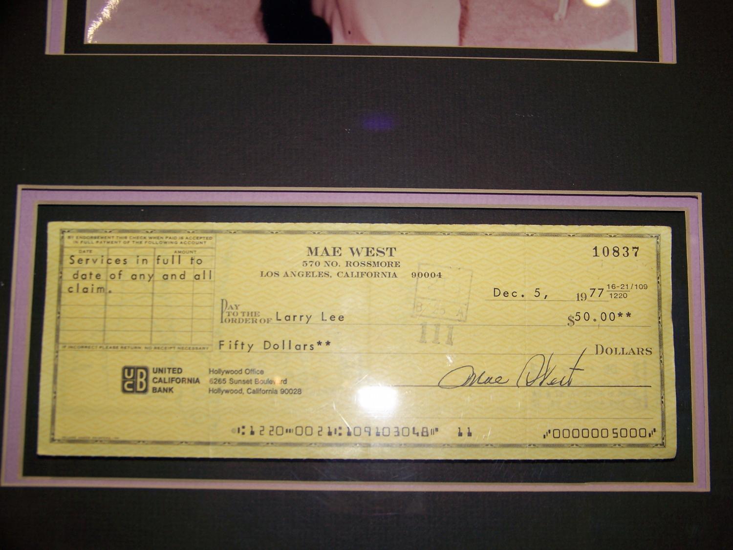 Mae West signed check dated dec. 5, 1977 from United California Bank.