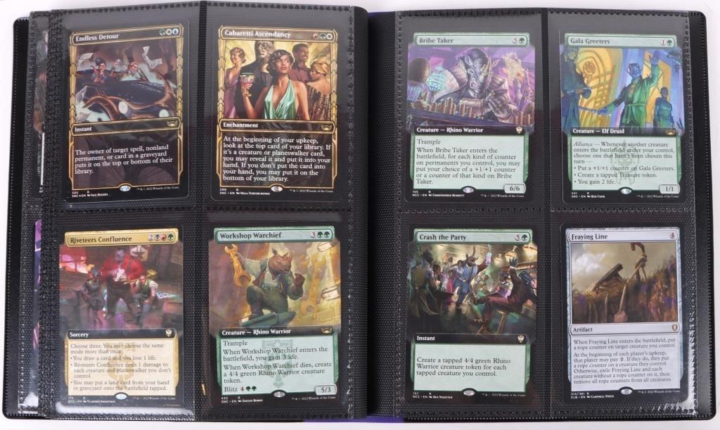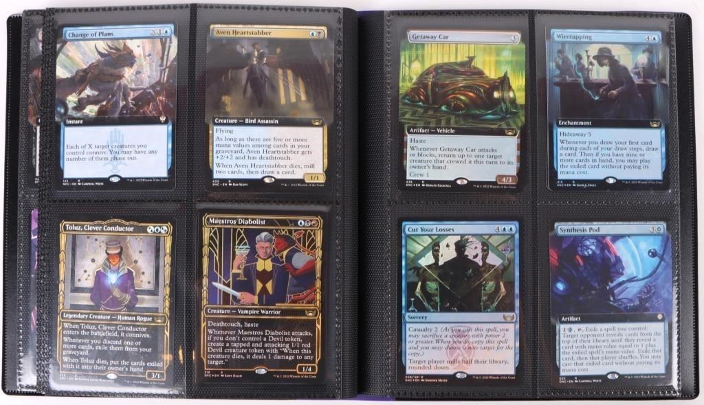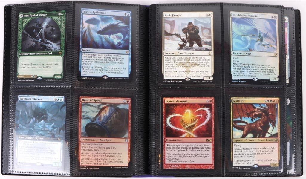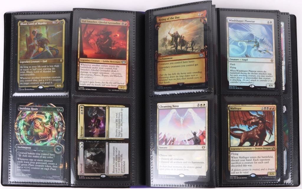 160 Magic the Gathering cards full of various foil cards and rare cards from many different sets, includes extended art cards and borderless art cards.