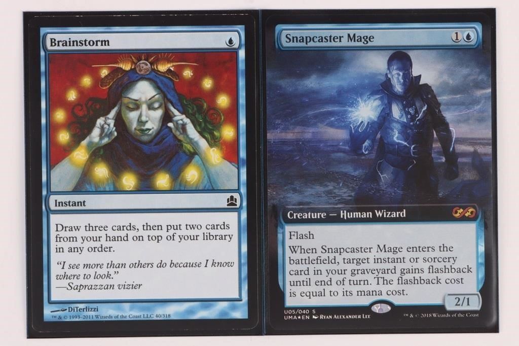 Magic the Gathering lot of 17 cards including a borderless foil box topper Snap Caster Mage, includes other various cards in the lot.
