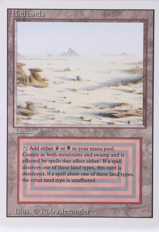 Up for auction is a highly sought-after Badlands card from the iconic Magic: The Gathering set. This legendary land card is a staple in any serious player’s collection and a key component in many classic and competitive decks.