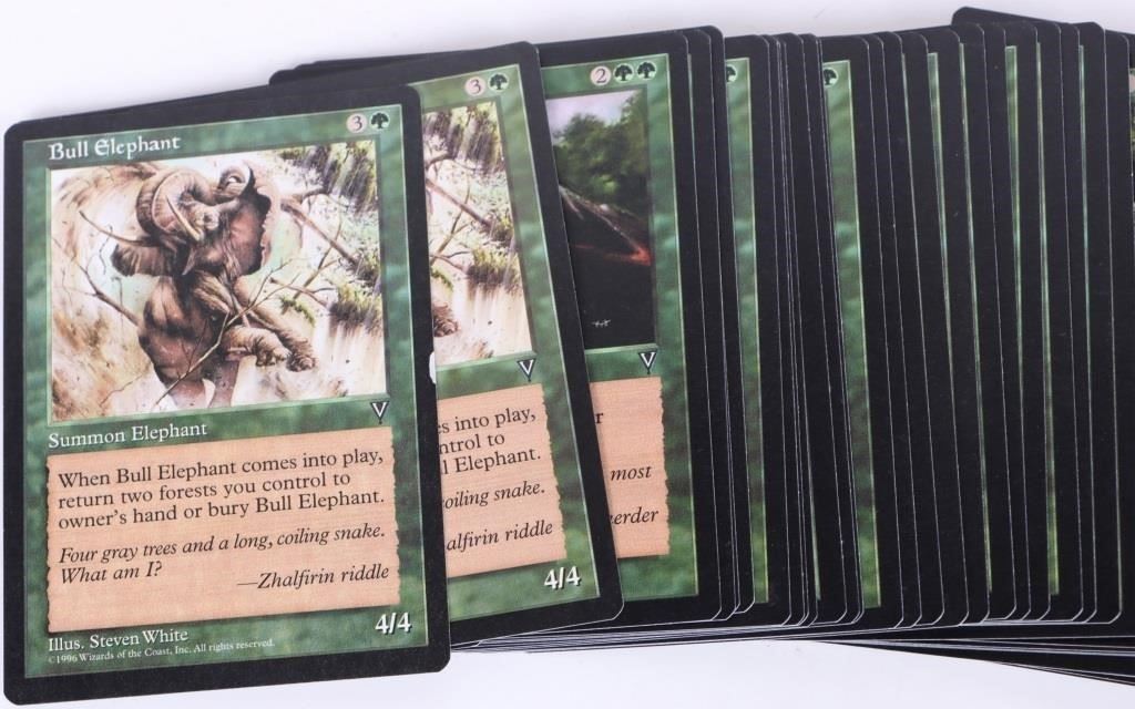 Magic the Gathering lot of various commons from the set Visions with approximately 700 cards in this lot featuring red, blue, black, green, and white cards as well as multi color cards and artifacts are included in this lot.