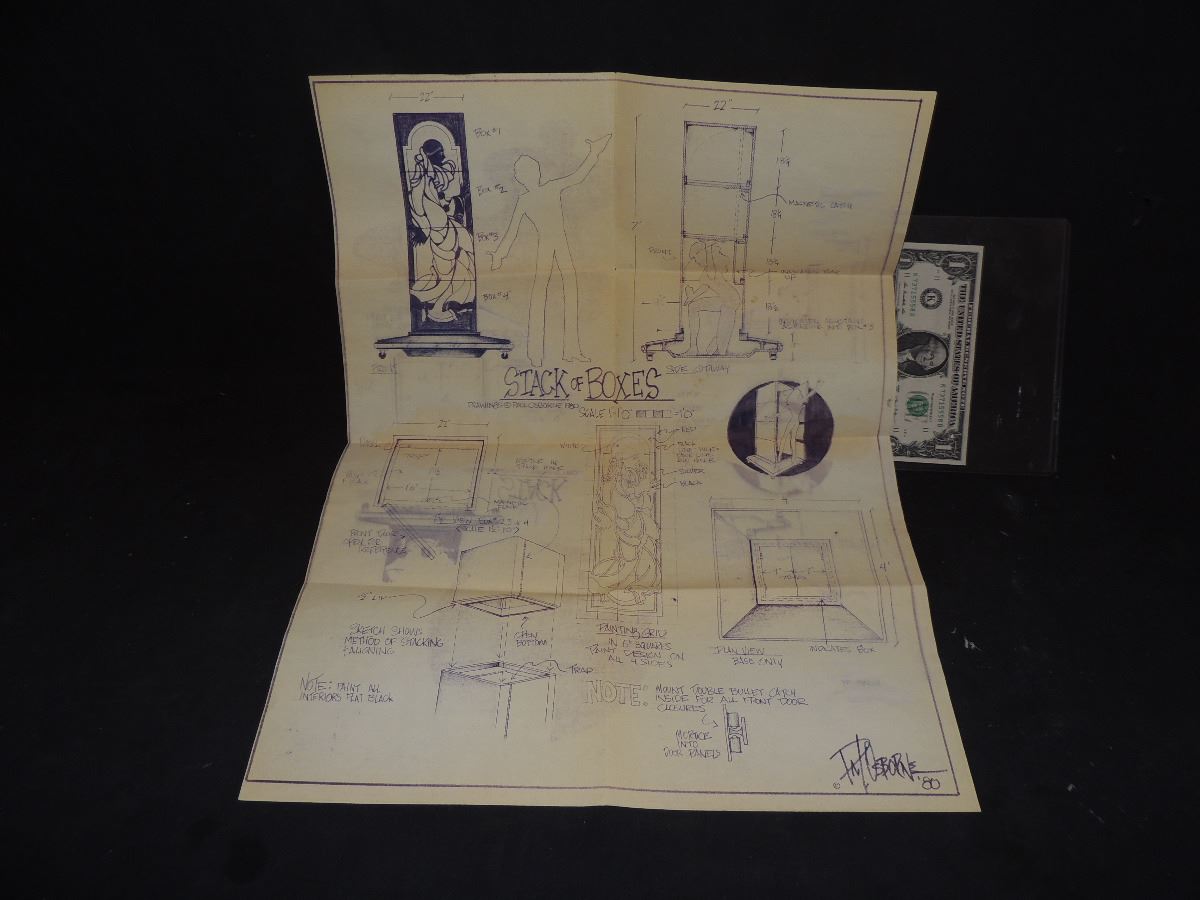 MAGIC TRICK VINTAGE STACK OF BOXES BLUEPRINT INSIDE MAGICIAN SECRET
