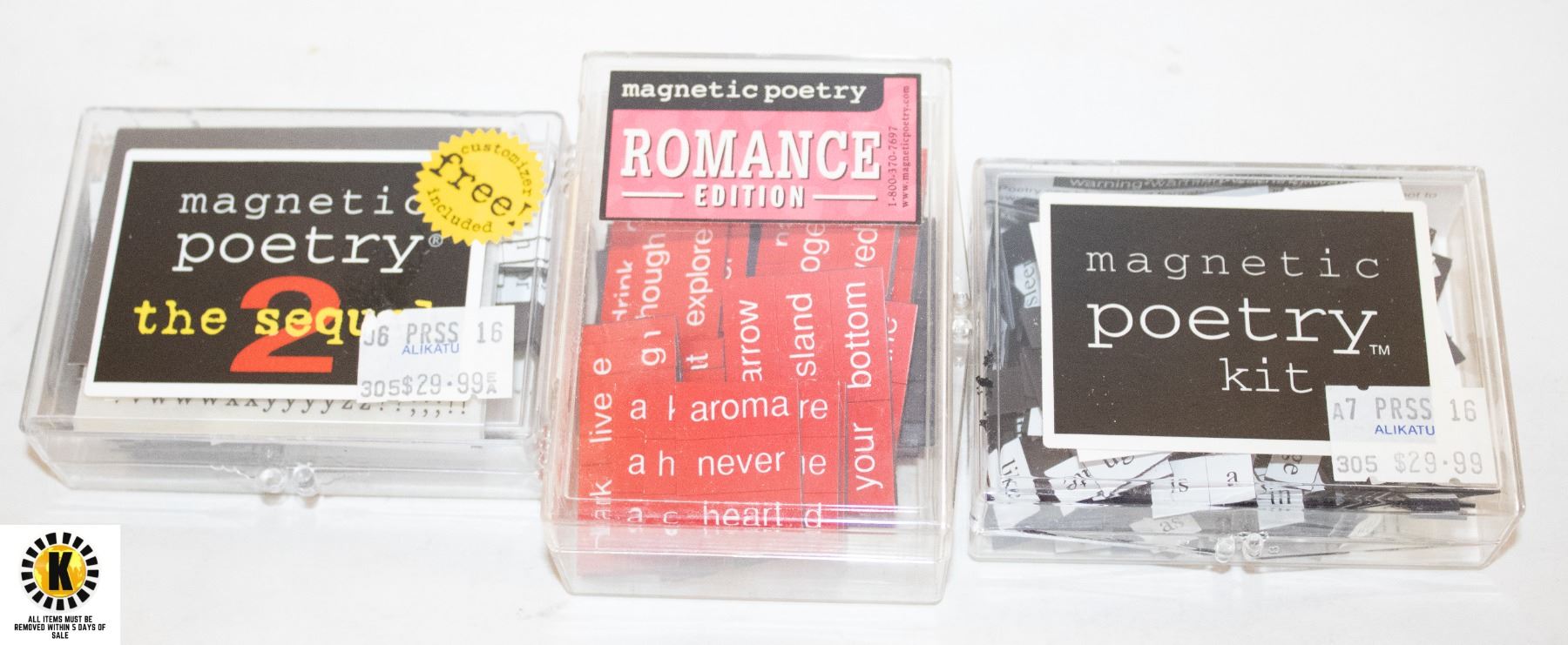 -All items need to be picked up within 5 days of purchase.
