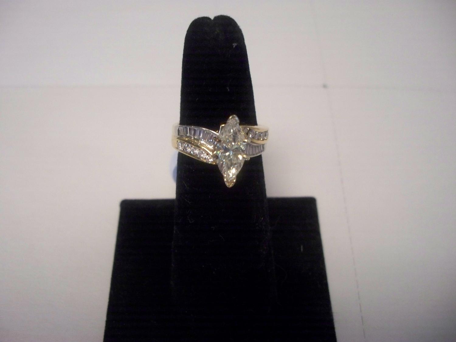 MAGNIFICENT 1.74 CARAT DIAMOND RING W/1.25 CT. CENTER MARQUIS DIAMOND, W/COA
